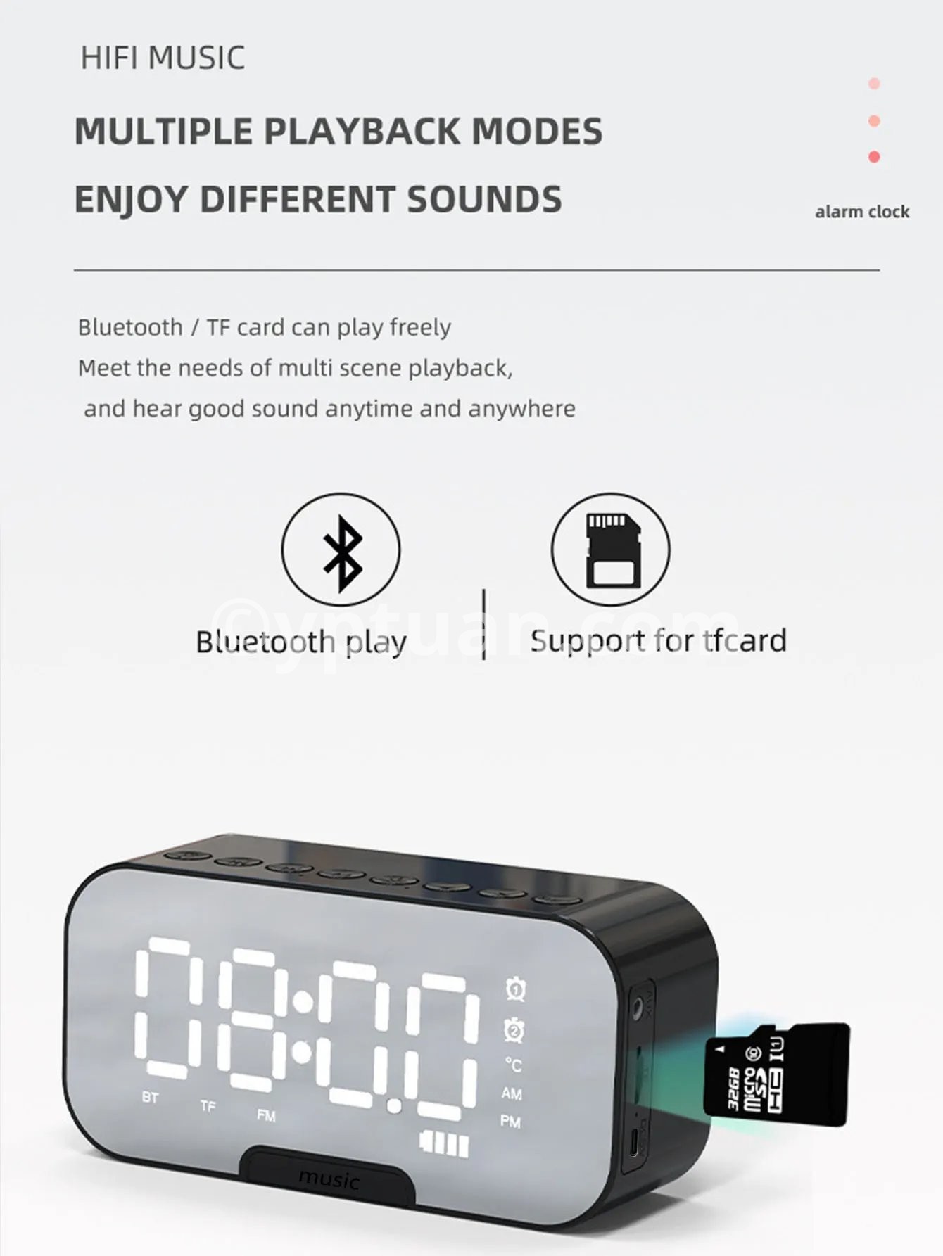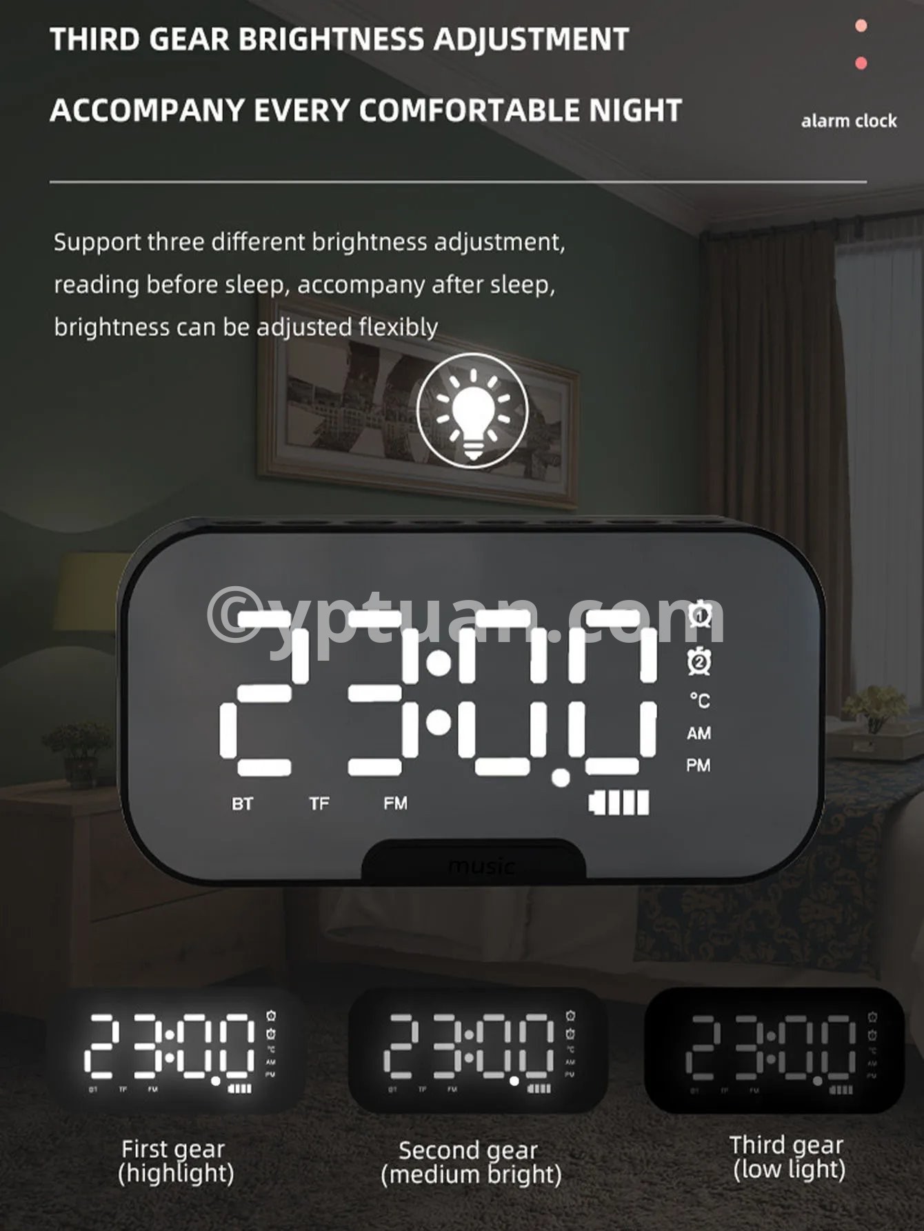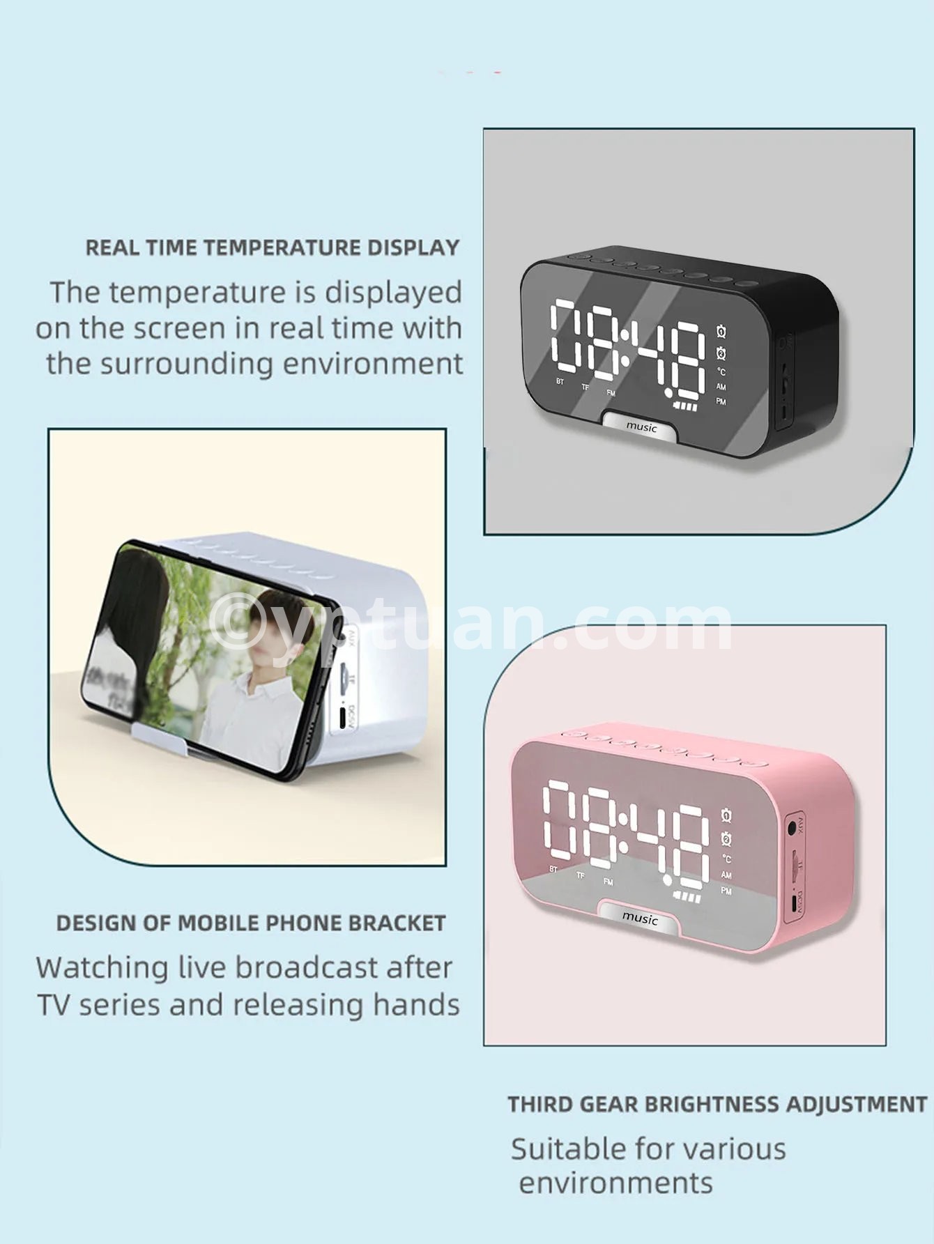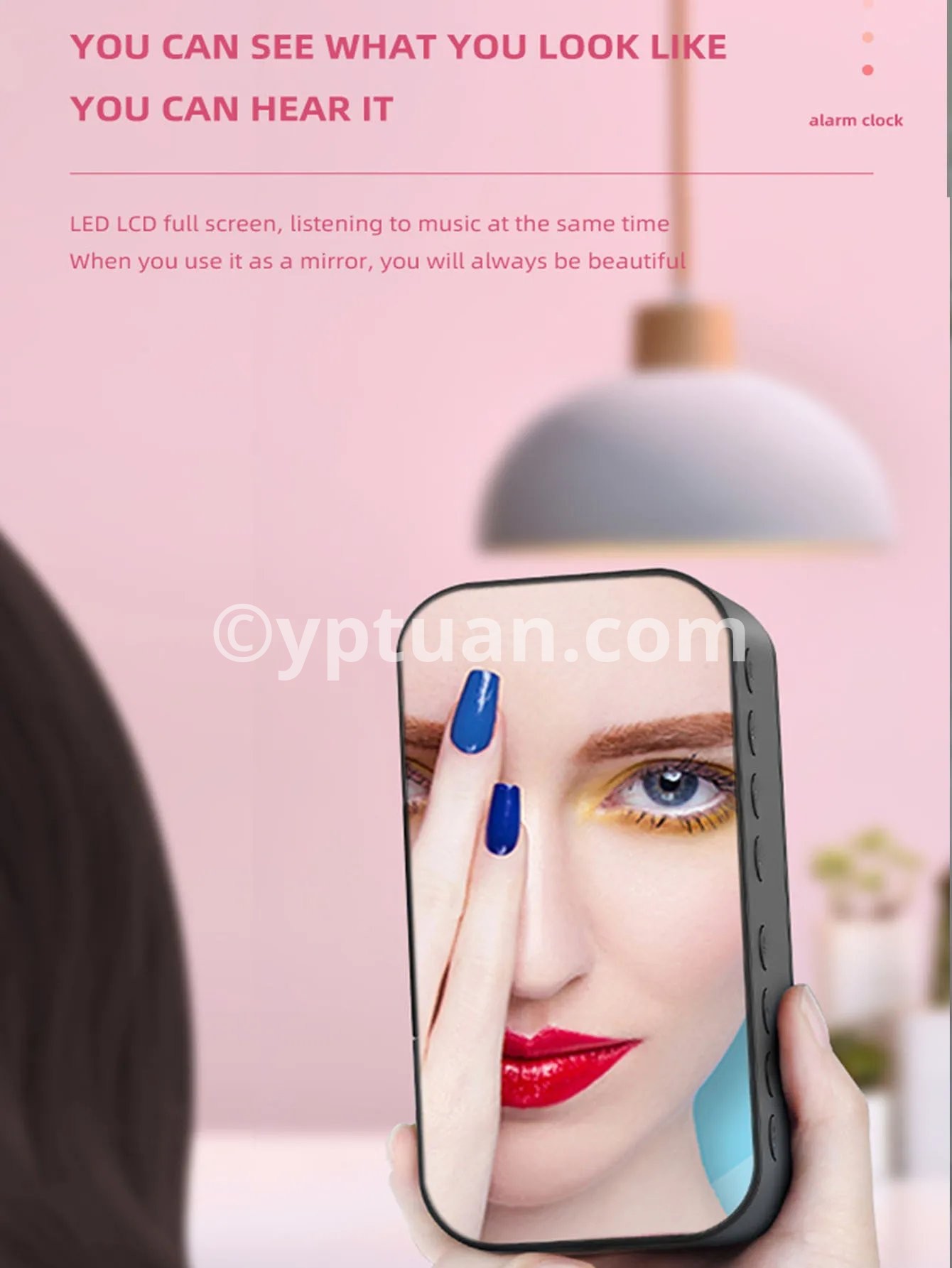 Wireless Bluetooth speaker mirror alarm clock, can be used as a mobile phone stand, real-time temperature display, dual alarm mo