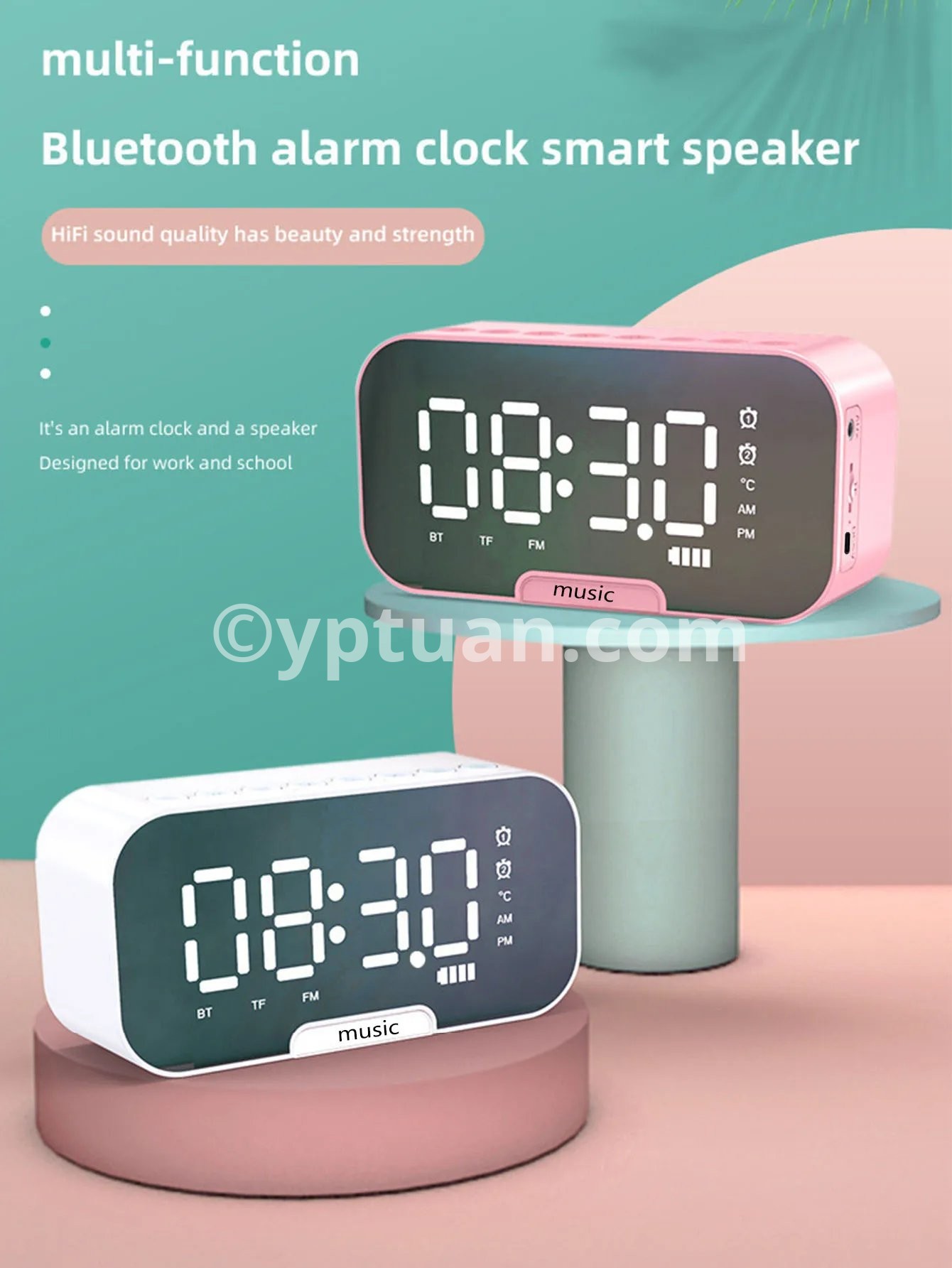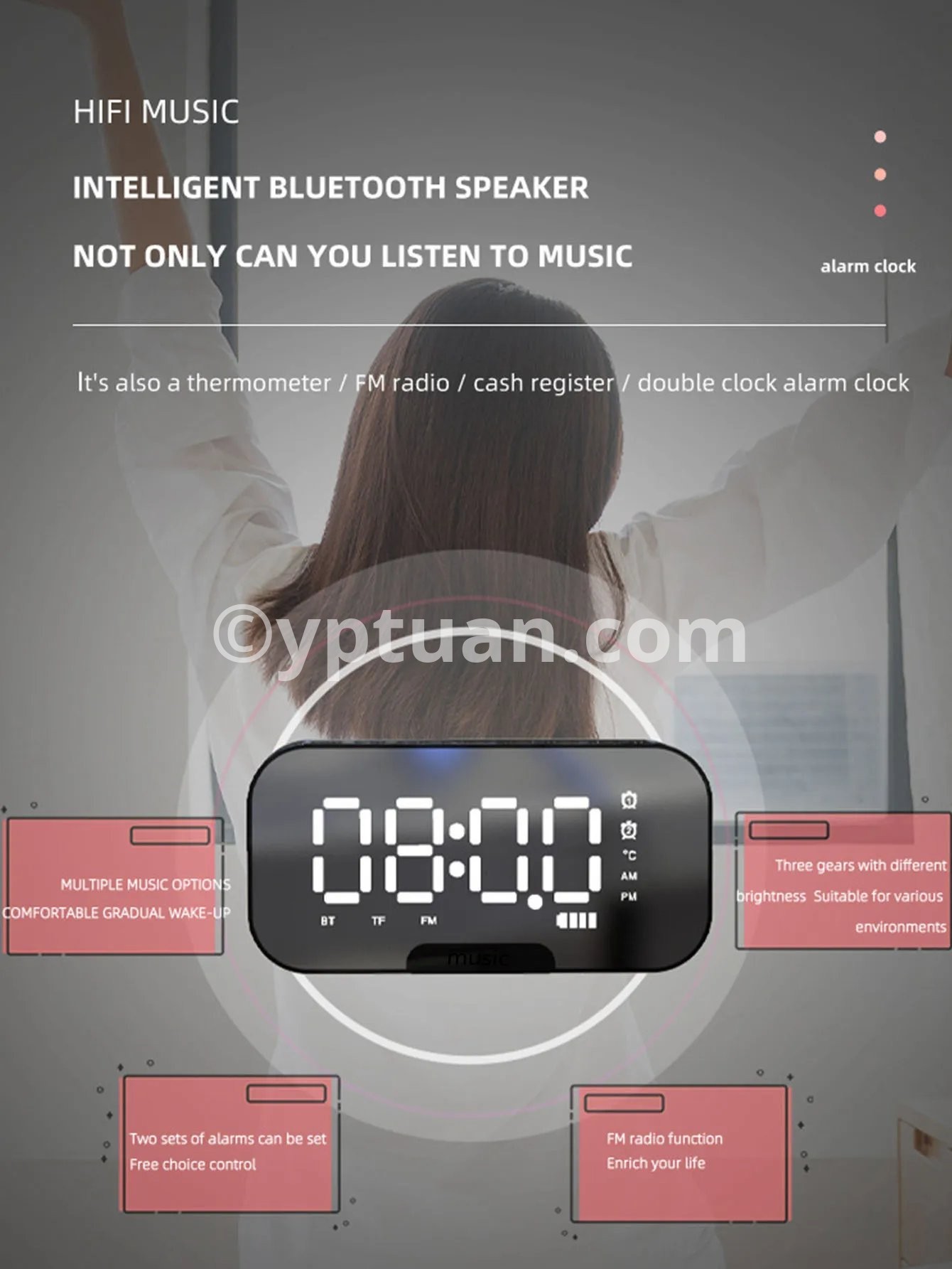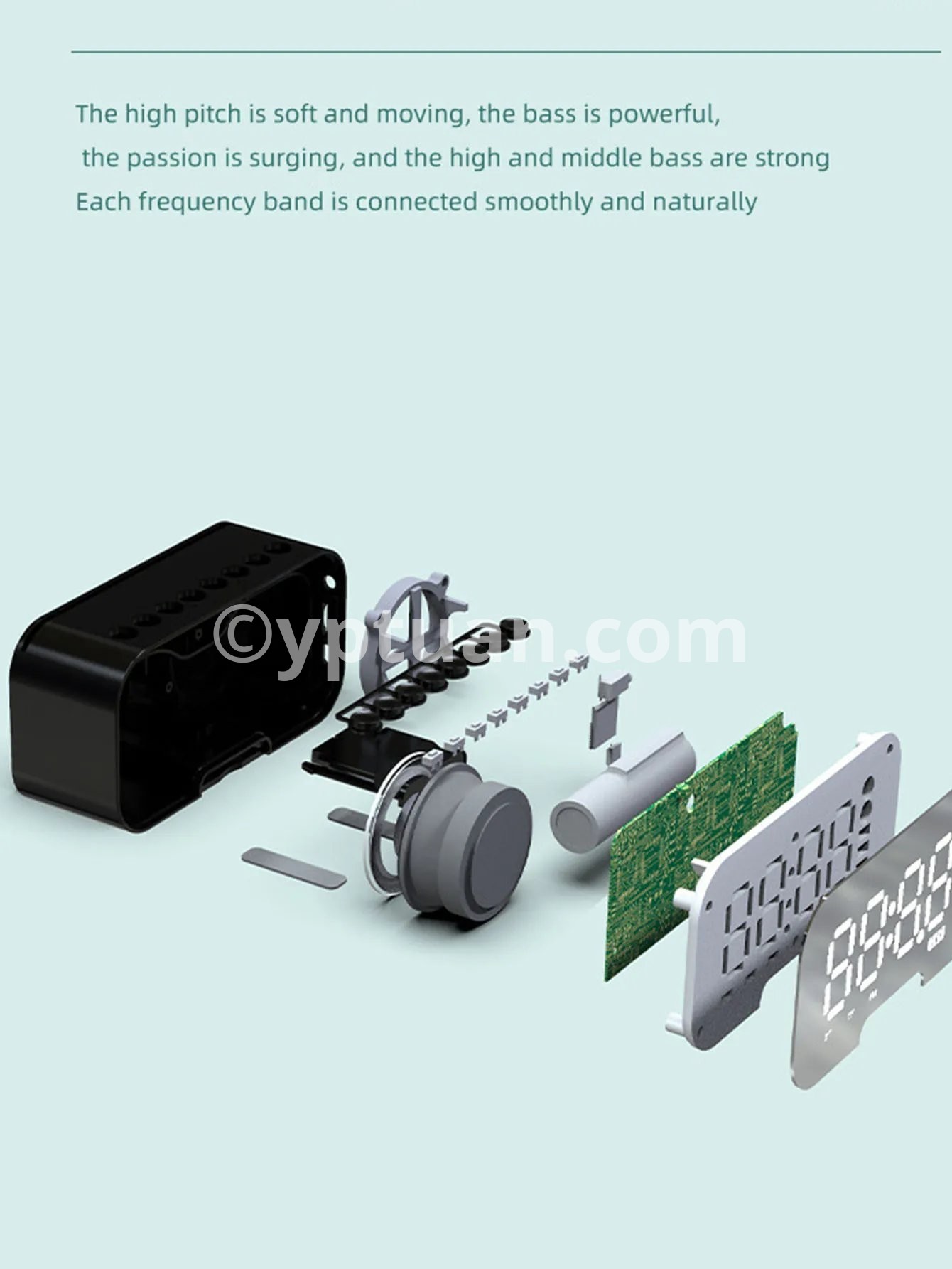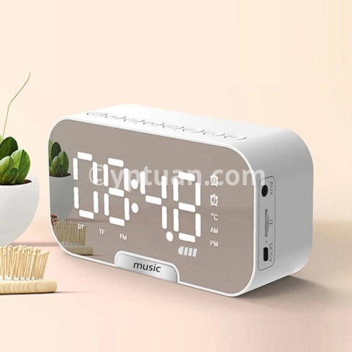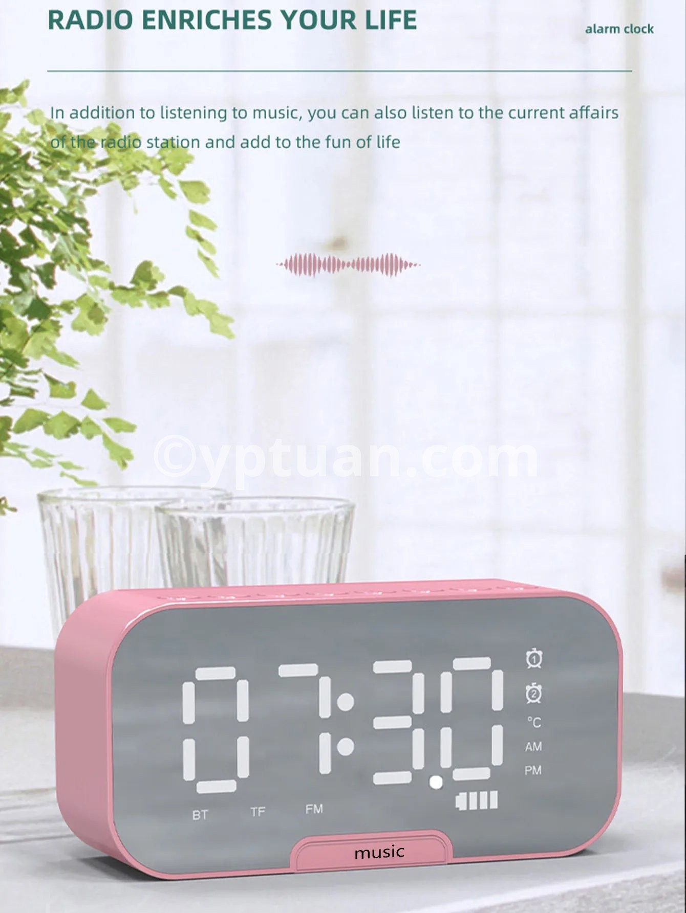Wireless Bluetooth speaker mirror alarm clock, can be used as a mobile phone stand, real-time temperature display, dual alarm mo