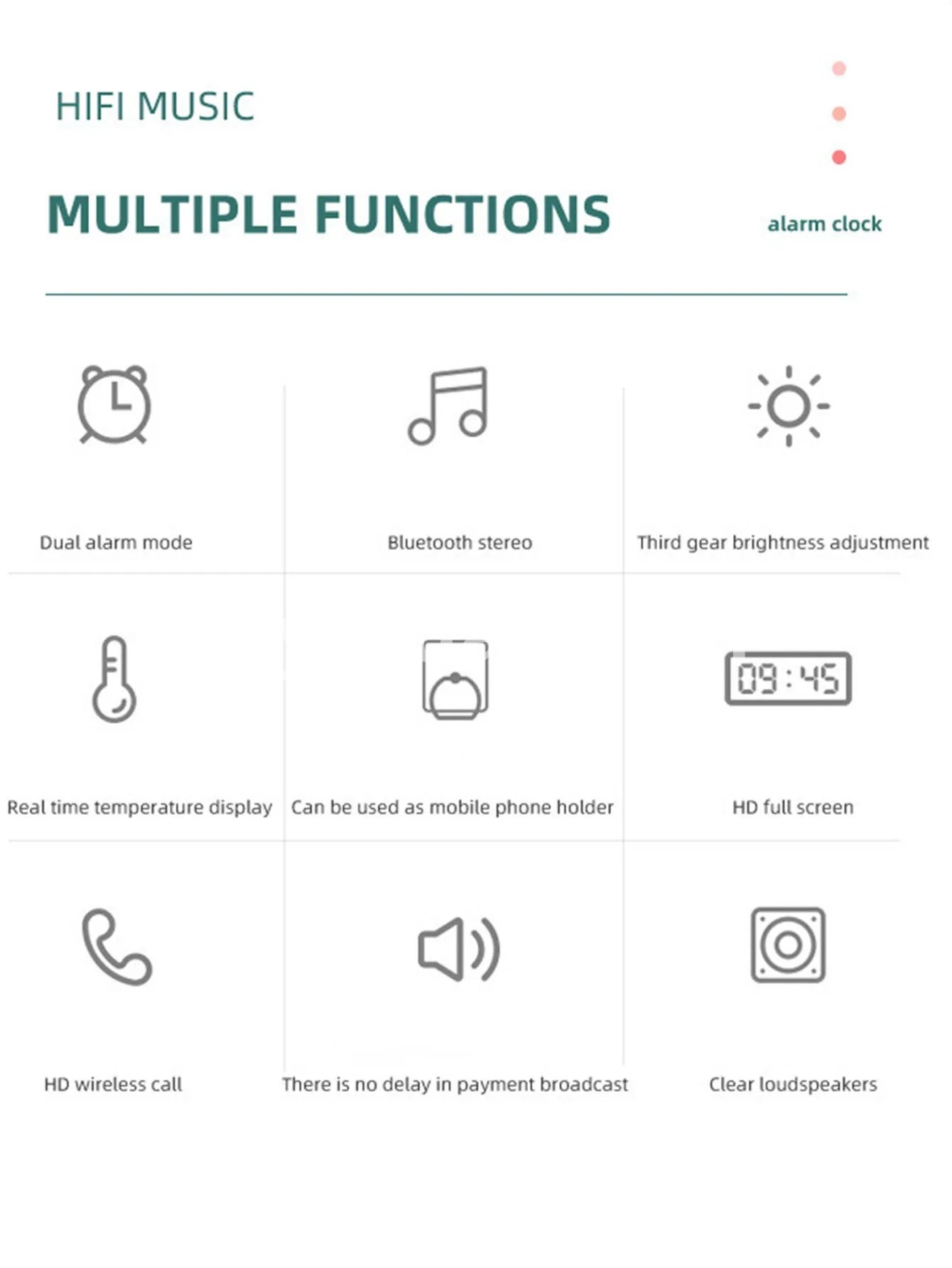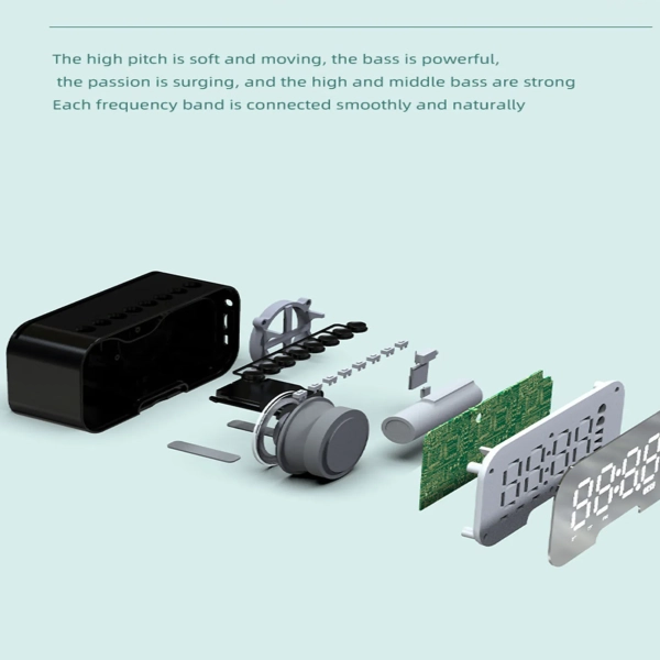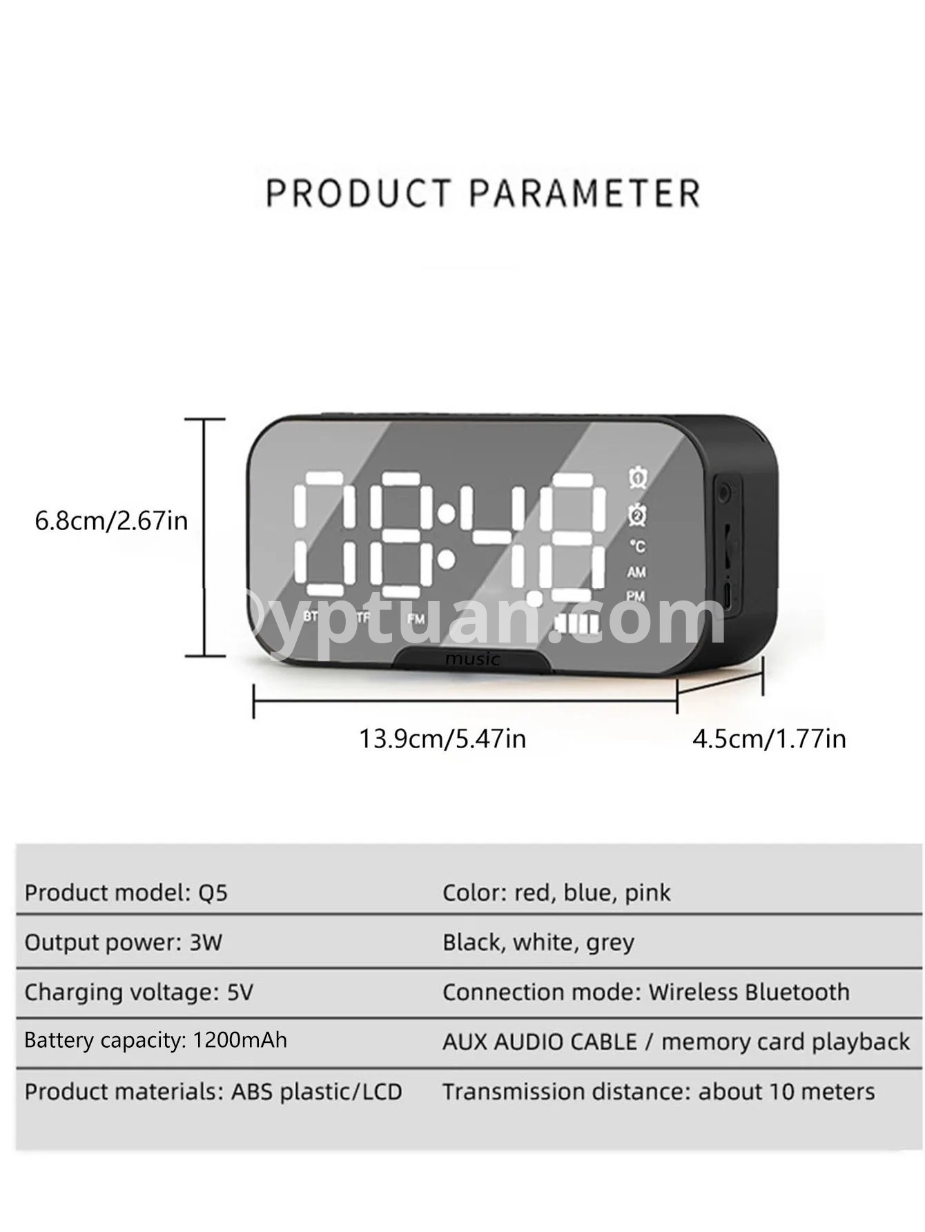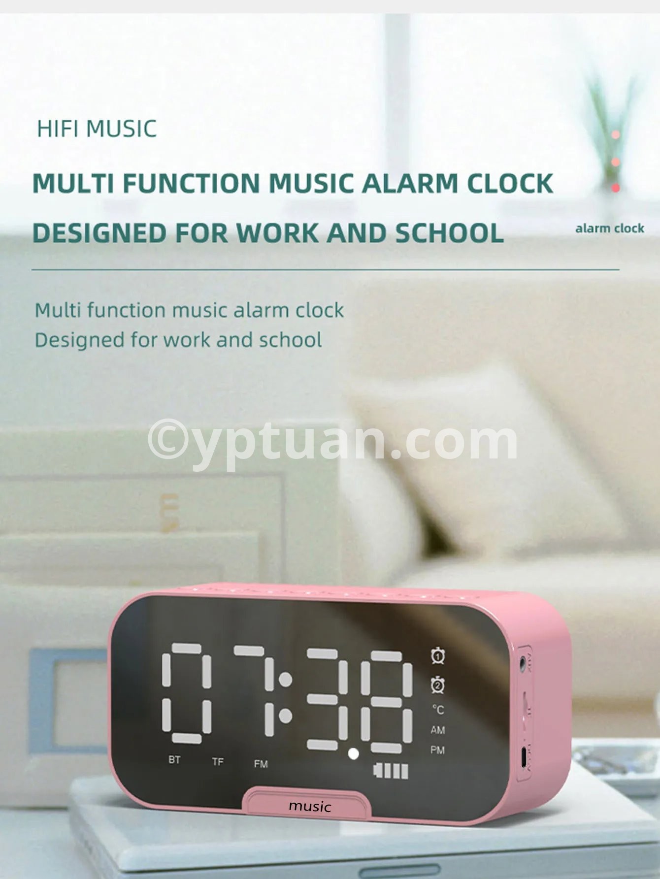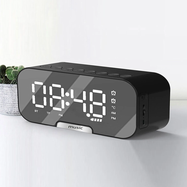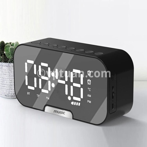 Wireless Bluetooth speaker mirror alarm clock, can be used as a mobile phone stand, real-time temperature display, dual alarm mo