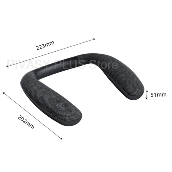 Wireless Neck Speaker Dual 3W Drivers 600mAh Battery IPX5 Waterproof Music Control Voice Prompt For Running Gym TravelProduct Parameters: Output Power:3W2 (6W Total) Driver Units:Dual Φ33mm Internal Magnet (4Ω) Frequency Response:20Hz-20KHz Bluetooth Version:5.0 (2.4GHz-2.48GHz) SNR:≥80dB THD:≤3% Battery Capacity:600mAh Polymer Playtime: 12-13 Hours (60% Volume) 8-9 Hours (100% Volume) 5 Hours (Calling) Standby Time:7200 Hours Charging Time:2-3 Hours (5V/500mA) Wireless Range:≥10 Meters Operating Temp:-25℃ to +65℃Package Included: 1 Neckband Speaker Note: There may be slight variations in data, size and weight; please refer to the actual product.Product Features: ✔ Ergonomic Wearable Neck Design ✔ Voice Prompt & Caller ID Function ✔ Track Control & Hands-Free Calling ✔ Ultra-Long 13-Hour Playback ✔ Lightweight 180g Comfort FitUsage Tips: • Fully charge before initial use • Avoid extreme temperature environments • Clean fabric surface with dry cloth only