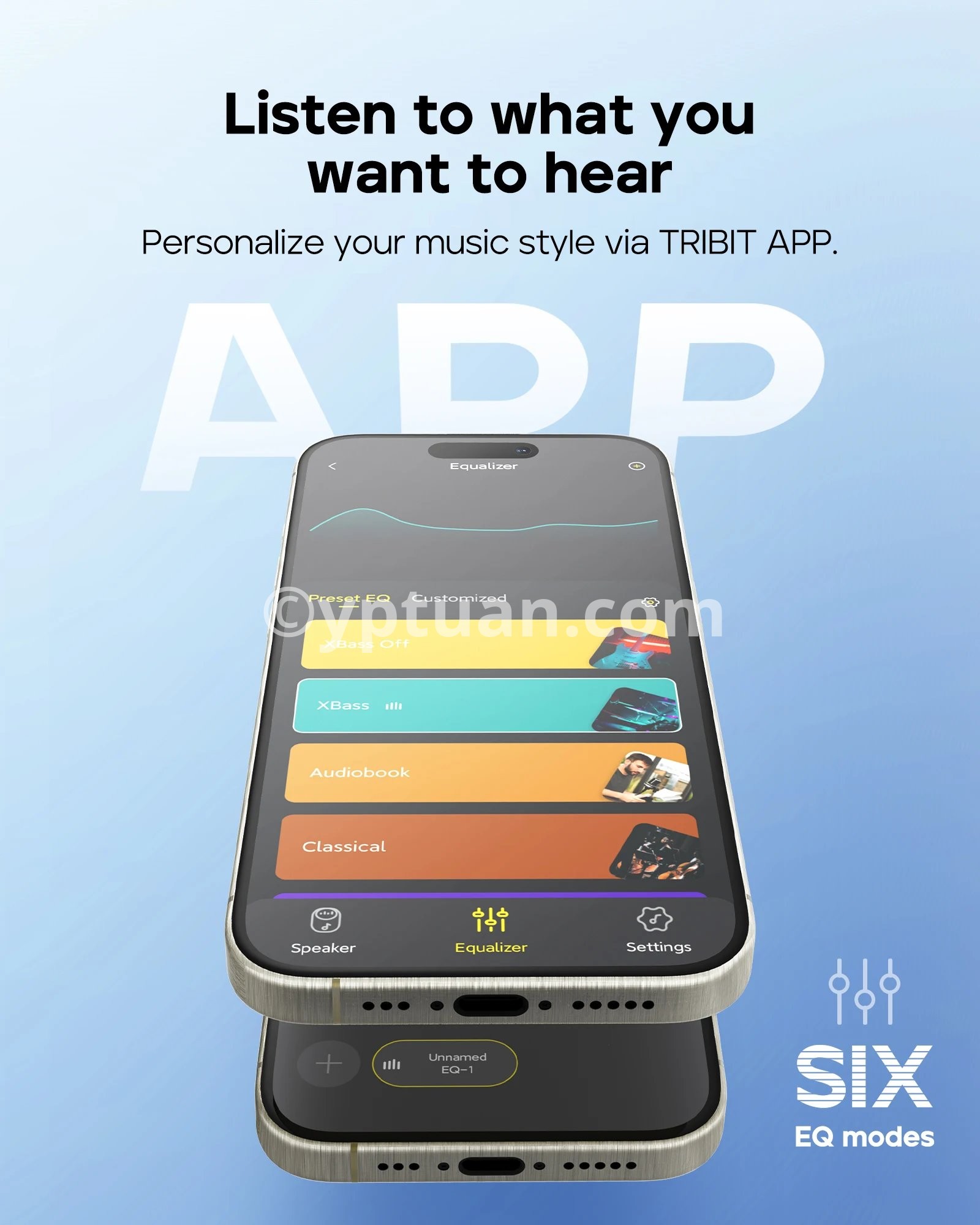 Customize your exclusive EQ by TRIBIT App and experience the charm of music.