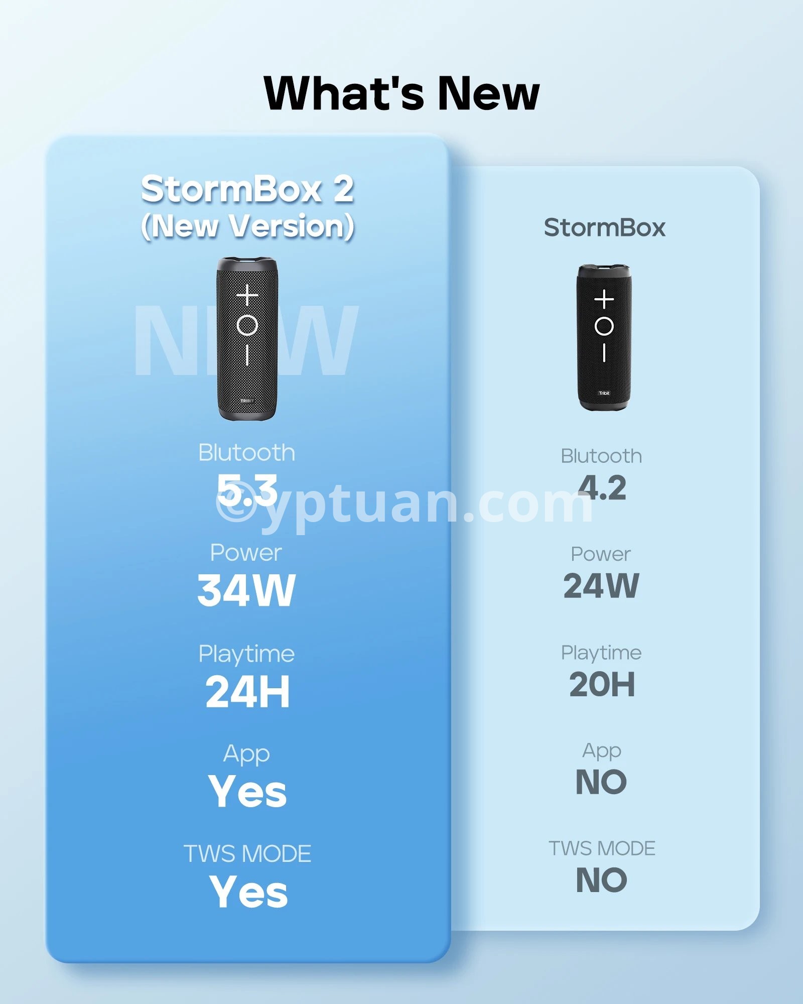 TRIBIT StormBox 2 Portable Bluetooth Speaker, 34W Power, IPX7 Waterproof Wireless Speaker 24-hrs Playtime For Camping, Hiking
