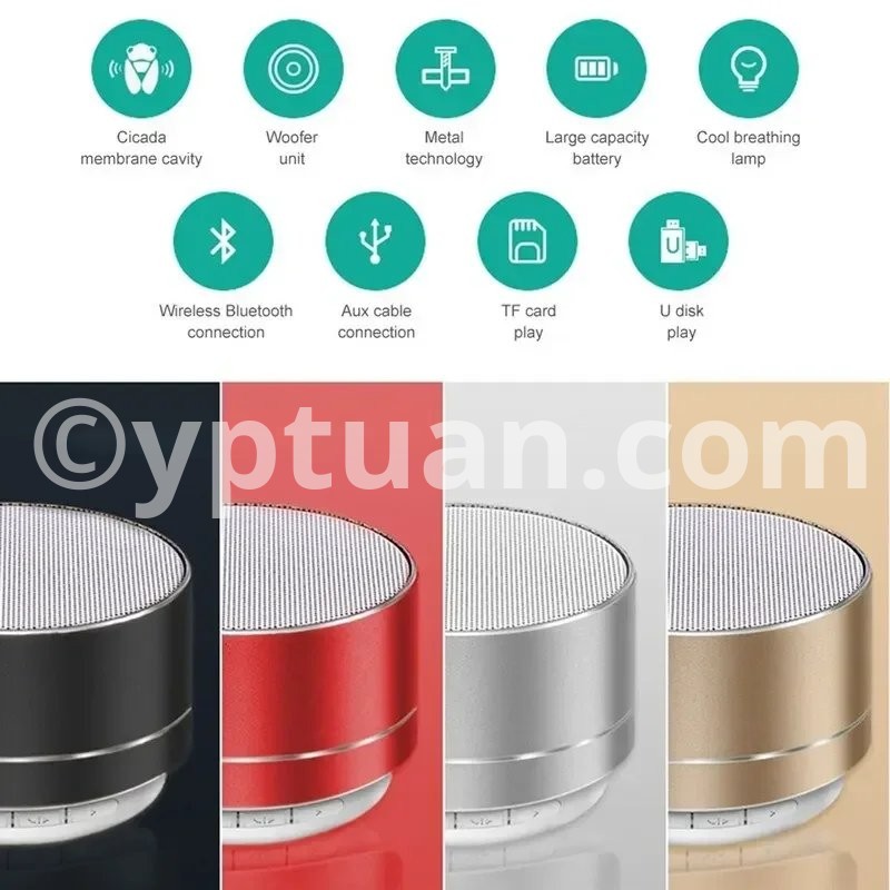 • Wireless Bluetooth Connectivity :Connects to your device wirelessly via Bluetooth, eliminating the need for cords and cables. • Portable Design :Compact and lightweight, making it easy to take on-the-go for outdoor activities or travel. • Subwoofer Sound Quality :Delivers powerful bass and clear audio for an immersive listening experience. • USB Power Source :Can be powered by a USB port, making it convenient to use with a variety of devices. • Portable and Compact :The speaker is small and lightweight, making it easy to carry around and use on-the-go. • Bluetooth Connectivity :Connects to your device via Bluetooth, allowing you to stream music wirelessly without any cords or cables. • Subwoofer Sound Quality :The speaker has a subwoofer that delivers deep bass and clear sound, making it perfect for music lovers. • USB Power Source :The speaker can be powered by a USB port, making it convenient to use with your laptop or power bank. • Portable and Compact :The speaker is small and lightweight, making it easy to carry around and use on-the-go. • Bluetooth Connectivity :Connects to your device via Bluetooth, allowing you to stream music wirelessly without any cords or cables. • USB Charging :Can be charged via USB, making it convenient to use and eliminating the need for batteries. • Stereo Sound Quality :Provides high-quality stereo sound, ensuring that your music sounds clear and crisp. • Wireless Connectivity :Connects to your device via Bluetooth, eliminating the need for wires and allowing for easy portability. • Portable Design :Compact and lightweight, making it easy to take with you wherever you go. • Subwoofer Sound Quality :Delivers powerful bass and clear audio for an immersive listening experience. • USB Power Source :Can be powered by a USB port, making it convenient to use with your laptop or power bank. • Wireless Bluetooth Connectivity:Connects to your device wirelessly via Bluetooth, eliminating the need for cords and cables. • Portable Design :Compact and lightweight, making it easy to take on-the-go for outdoor activities or travel. • Subwoofer Sound Quality :Delivers powerful bass and clear audio for an immersive listening experience. • USB Power Source :Can be powered by a USB port, making it convenient to use with a variety of devices. • Portable and Compact :The small steel cannon design makes it easy to carry around and use on-the-go. • Bluetooth Connectivity :Connects to your device via Bluetooth, allowing you to stream music wirelessly. • Subwoofer Sound Quality :Delivers powerful bass and clear audio for an immersive listening experience. • USB Charging :Can be charged via USB, making it convenient to use and eliminating the need for batteries. Describe: Can be connected to mobile phones, notebooks as music players Can be connected to a computer as a computer player with perfect sound quality Can insert memory card, USB, as MP3 player Support TF card, U disk, etc. (excluding memory card) HiFi and clear and perfect sound. Press and hold the back or forward button to adjust the volume. Easy to use portable and mini size Specification: Product color: black, silver, rose gold, red, blue Material: ABS/Metal Whether to support radio: support Whether to support TF card: yes Audio Input: No Transmission distance: 10 meters Bluetooth name: BT-SPEAKER Micro Charge Input: DC 5V / 1000 mA Battery capacity: 3.7 V/300 mA Charging time: 2 hours Music playing time: 1-2 hours Accessories: charging cable Product size: 72mm * 72mm * 46mm Packing: 74*74*65mm Packing list: Speaker*1 Data cable*1 Notice: Please allow for slight size differences due to manual measurements. If there is any problem with the product, please feel free to contact us, we will solve it for you!
