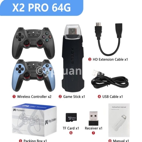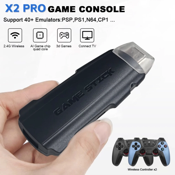 X2 PRO Video Game Console 4K HD 128G Built-in 30000 Games Wireless Controller TV Game Stick Retro Handheld Game Player for GBA