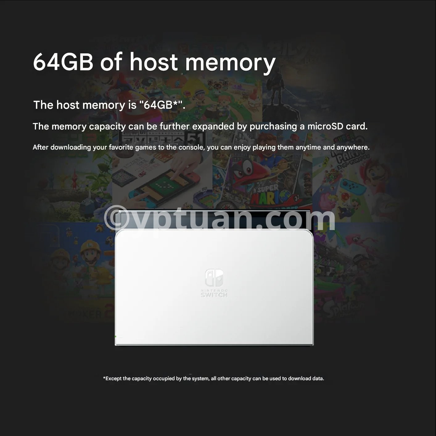 Save games to your systems with 64 GB of internal storage, a portion of which is reserved for use by the system.