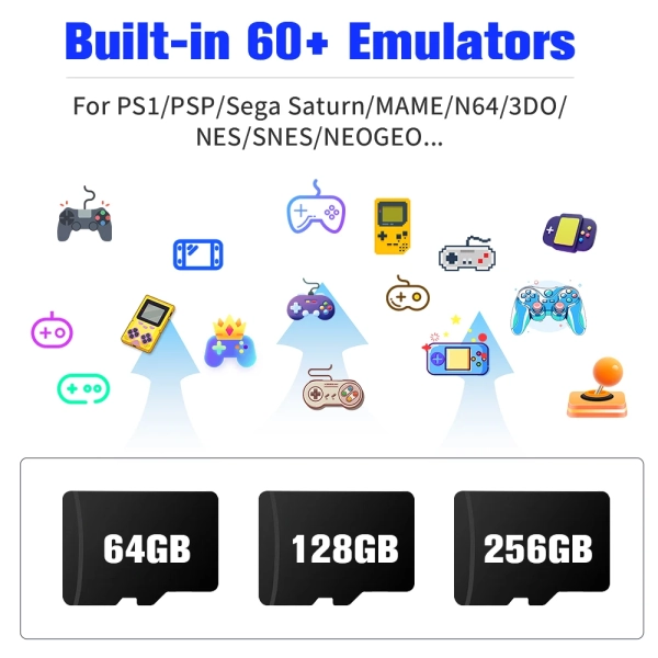 This TF gaming card built-in 60+ emulators, for ps1/psp/sega saturn/MAME/N64/3DO/NES/SNES...
