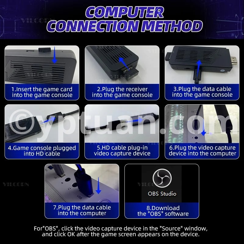 The method below is only suitable for TV sets, connecting to a computer requires you to have your own video capture device, and then try it through the obs software.