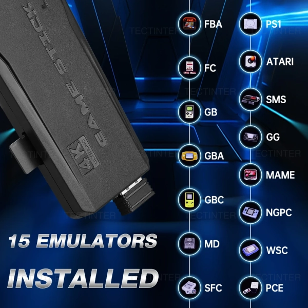 With upgraded 3032 chip chip, the console is built-in more than 9 Emulators, which you can download and save at its Memory Card.