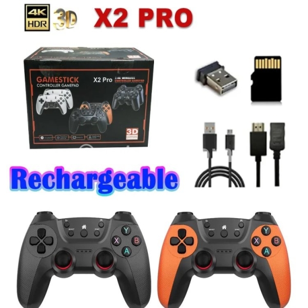 50000games X2 Pro 4KHD Game Stick 44/45 Emulators Retro Game Console Rechargeable Wireless Controller Home TV 2Players Kids Gift