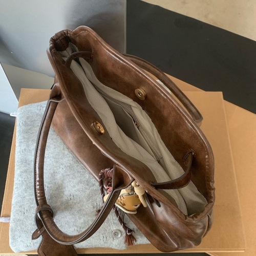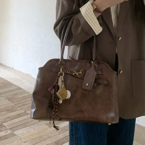 Vintage Lazy Briefcase Womens Large Capacity PU All-matching Simple Niche Handbag Shoulder Tote Bags