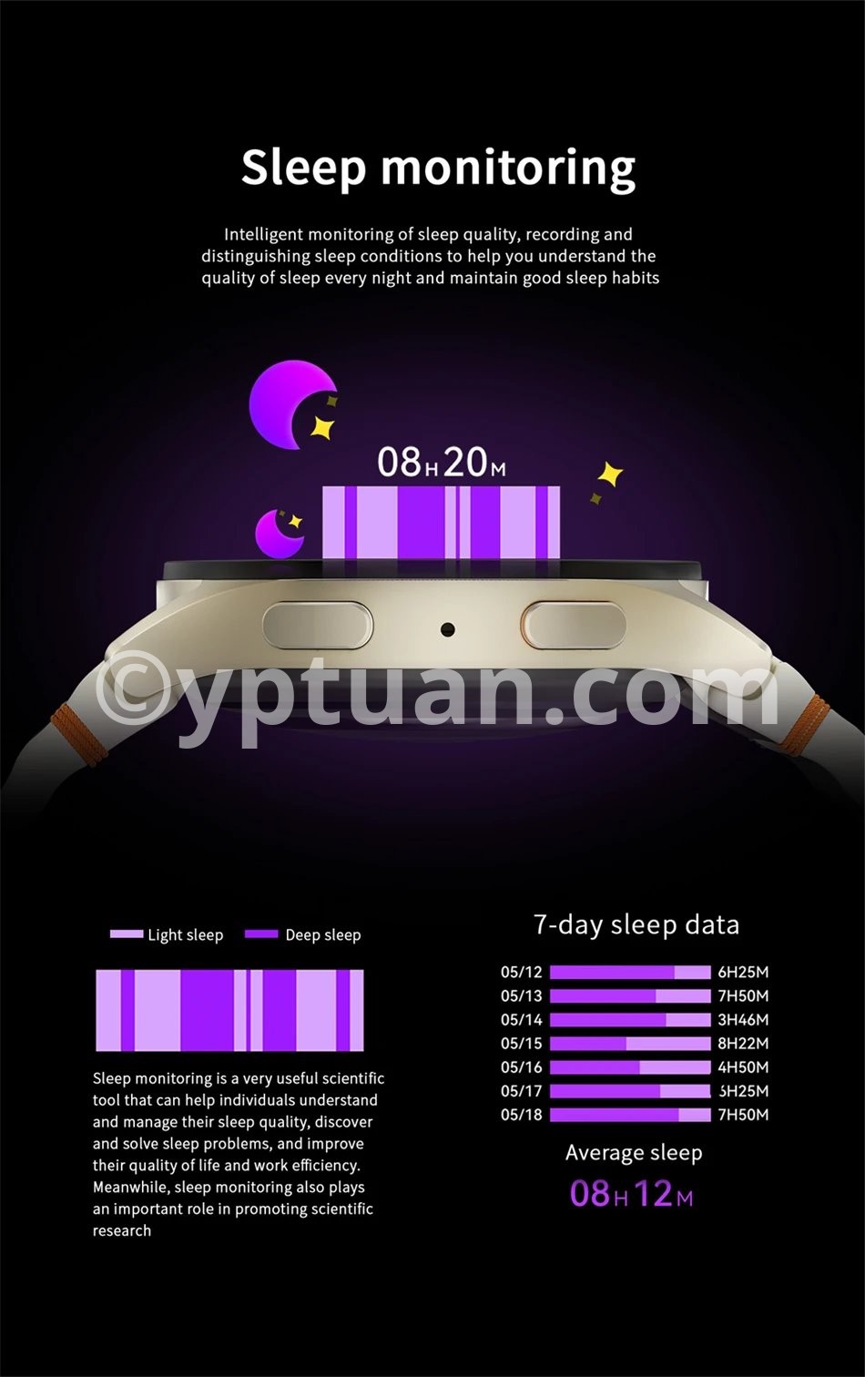 ➤Health monitoring: Blood pressure, heart rate, blood oxygen, sedentary reminder, sleep monitoring, automatic heart rate monitoring, etc.