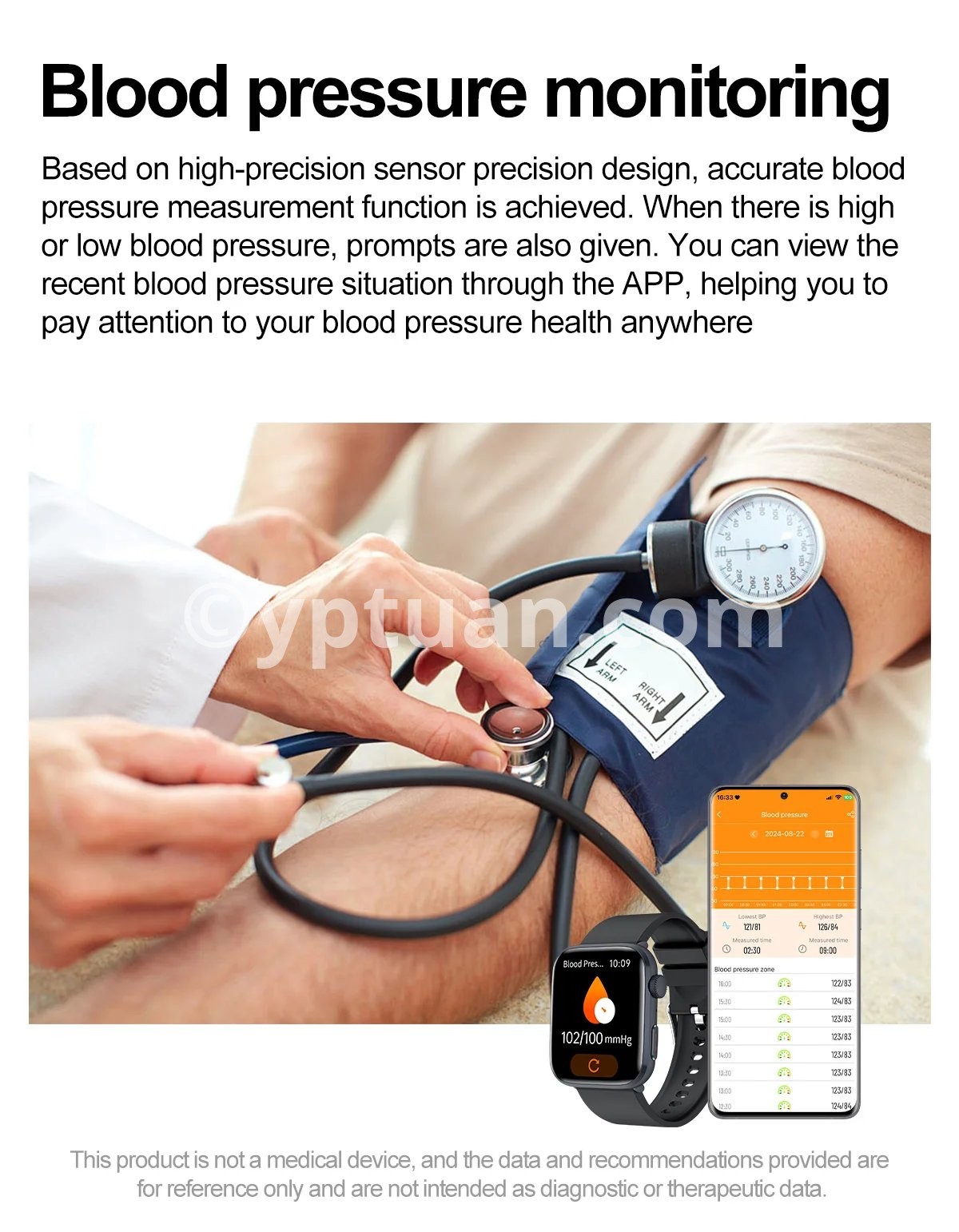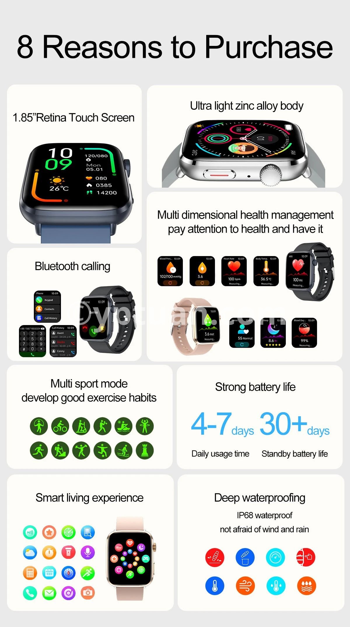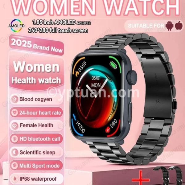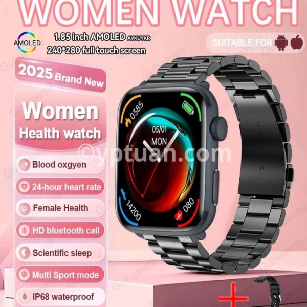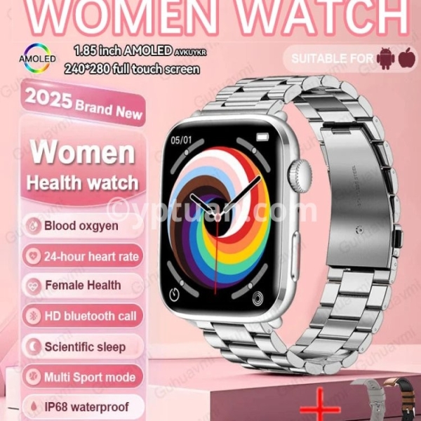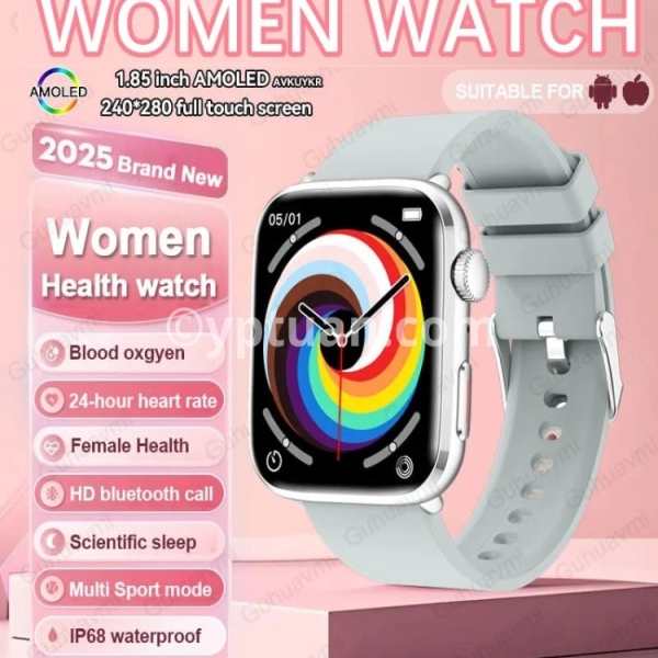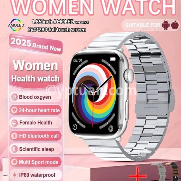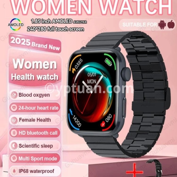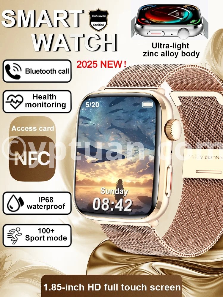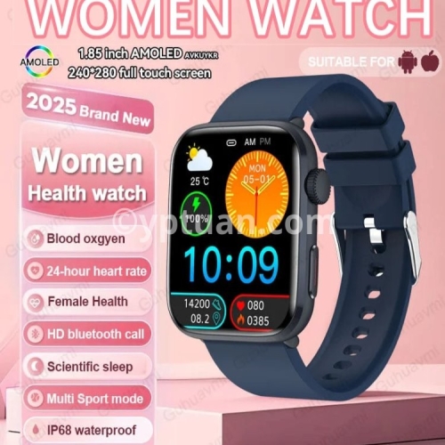 dear friend: This is our store's latest 2025 fashionable sports high-end health management watch, weighing only 35 grams, Equipped with a 1.81-inch Super Retina 240 * 284 full touch screen, Bluetooth calling, HRV detection, temperature monitoring, Meta function, SOS emergency call function, heart rate monitoring, red light true blood oxygen monitoring, blood pressure monitoring, respiratory training, women's health (menstrual tracking) sleep monitoring, stress detection, sedentary reminder, NFC access control function, rotary encoder, etc; Step count/calories/distance, multiple exercise modes, alarm clock, weather forecast, intelligent voice assistant, games, flashlight, music playback and control, calculator, calendar, stopwatch, etc., Al health diagnosis smartwatch. Welcome everyone to come and purchase!