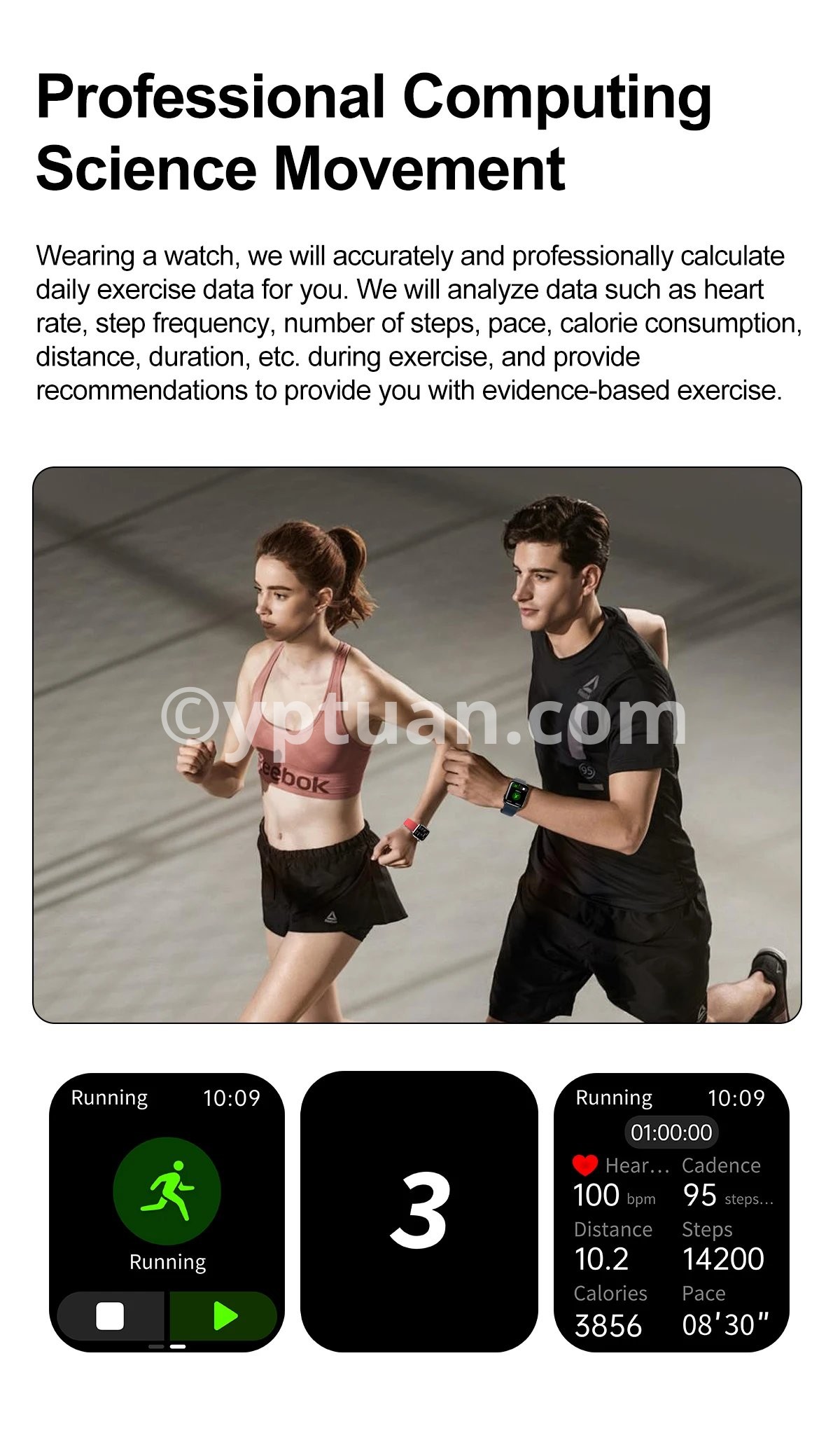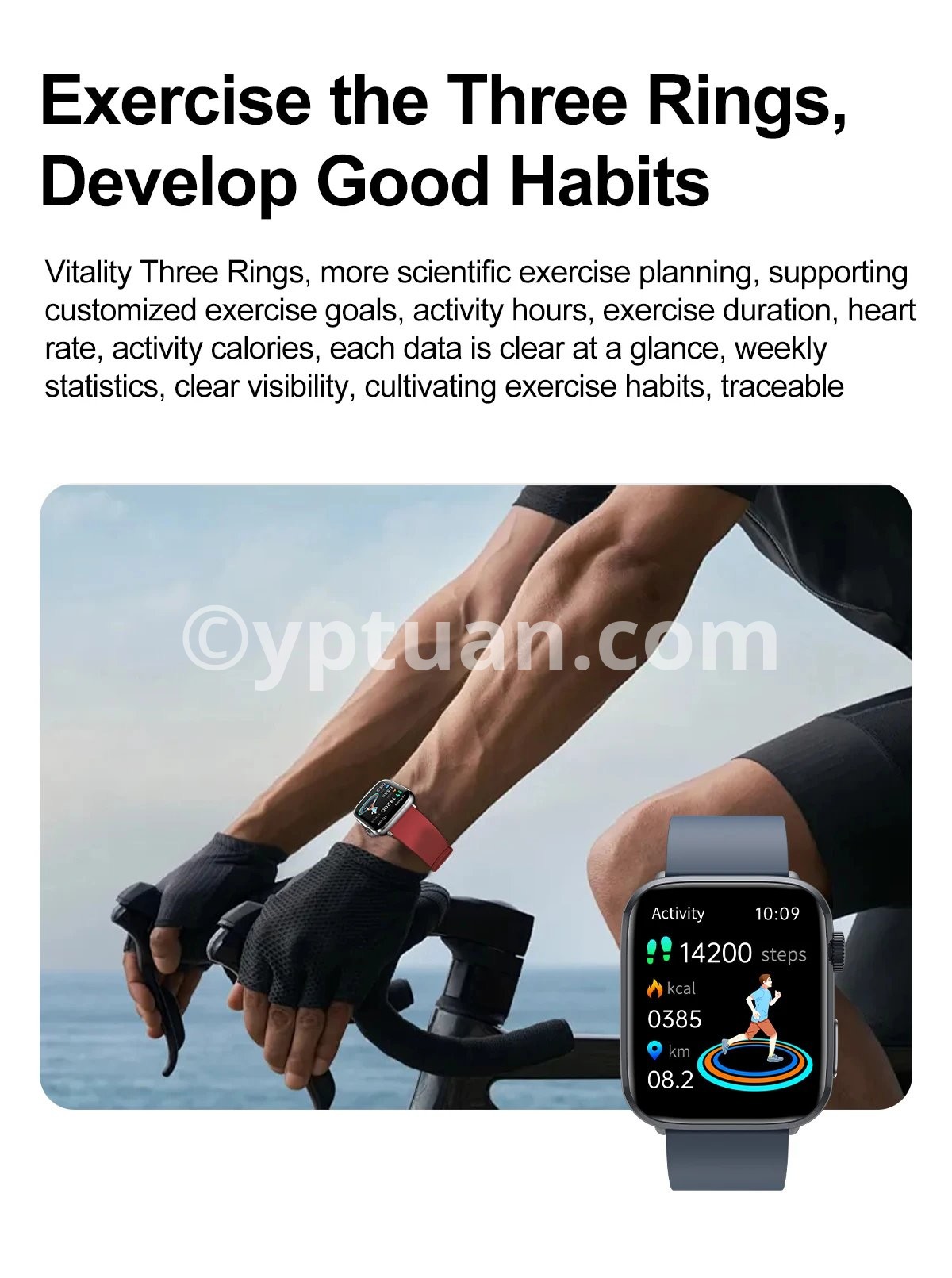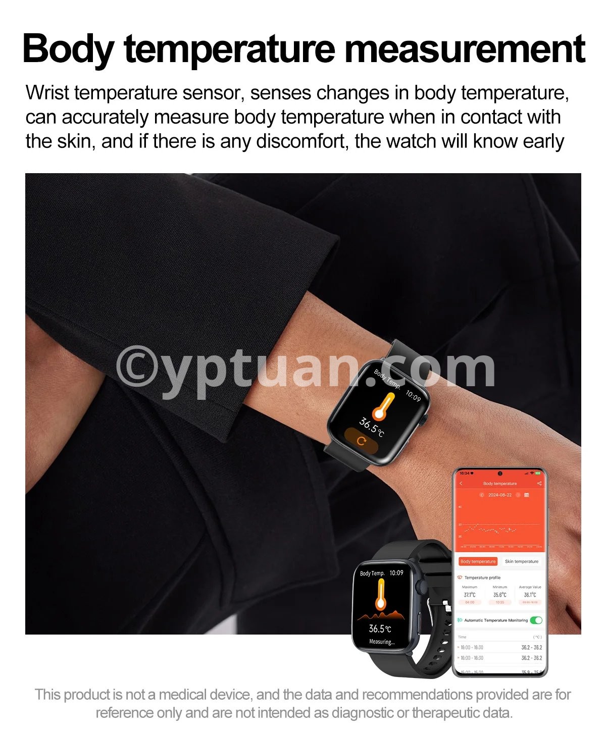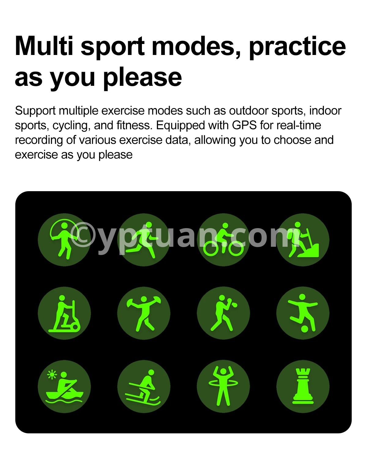 1. HD two-way call, voice assistant, one-click SOS assistance 2. Accuracy improvement+health micro-examination can quickly assess the physical condition and reflect the basic physiological state of the body in real time. 3. Blood oxygen: support continuous monitoring and automatic screening at night, generate a whole-day blood oxygen trend chart, and the early warning of hypoxia is earlier than dizziness symptoms. 4. Sleep: accurately identify the stages of light sleep, deep sleep and REM sleep, and automatically generate a sleep report. 5. Blood pressure: monitor the peak value of exercise blood pressure in real time to warn the risk of vascular overload. 6. Body temperature: feedback the change of body temperature in real time to avoid the dehydration risk caused by high temperature exercise. 7. Menstrual tracking: Combined with heart rate variability (HRV) data, accurately identify the ovulation window. 8.NFC access control, users do not need to carry a traditional physical access card, as long as they carry a watch.