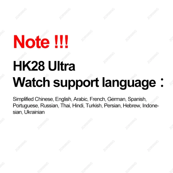 ★NFC door access ( It doesn't support NFC Payment ) : The watch has a built-in NFC chip, there is no NFC software icon on the watch, you only need to use the watch as an NFC access control card, record the NFC ID of the watch through the access control system, and then the watch can be used as an NFC access control card. (1). The NFC of this watch only supports as IC door cards with a frequency of 13.56MNZ (applicable to 80% on the market), does not support other functions. (2). The fingerprint lock enters the administrator mode-add-card-write. (3). Encrypted access control of the community needs to be written in the community property management office. ★Waterproof: It is just life waterproof allow the watch to be used normally when washing hands and in rainy days, but not allow to swimming and bathing. It is not allowed to soak the watch in water! (Please be careful to avoid corrosive liquids like hand sanitizer, soap enter the watch and cause component damage.) ★Please use the original charging cable of the HK28 ultra to charge the watch, other models of cables cannot support charging. ★Please use a 5V1A (5W max) power adapter to charge the watch, otherwise the watch may not charge!