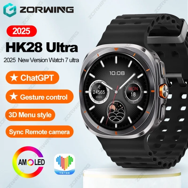 HK28 Ultra AMOLED Smart Watch Men Women NFC ChatGPT Gesture Control Smartwatch Heart Rate Sport Watch 7 Ultra for Samsung 2025