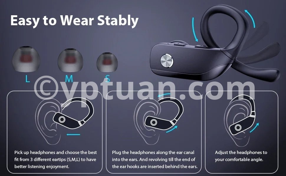 4. Adjustable soft silicone ear hooks: Designed in the ear-carried shaped and prevent fall off, fit for sports