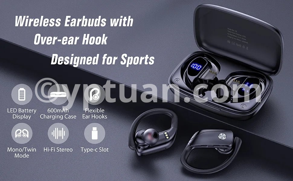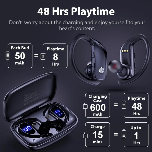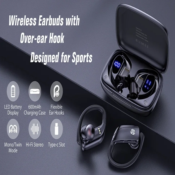 TWS Earhook Sports Fitness Earbuds LED Display Bluetooth Handsfree Call Noise Cancelling Wireless In Ear Earphone Airbuds