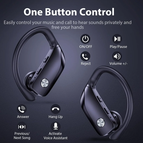 One Button Control and Auto Pairing: Compared with touch control, button control is easy so that you can obviate any operations and don't need to remember its instruction. When you pick wireless earphones out of the charging case, they'll automatically connect to the paired previous device. The range can reach up to 33ft away. When you put it back, the bluetooth earphones shut down and are recharging.