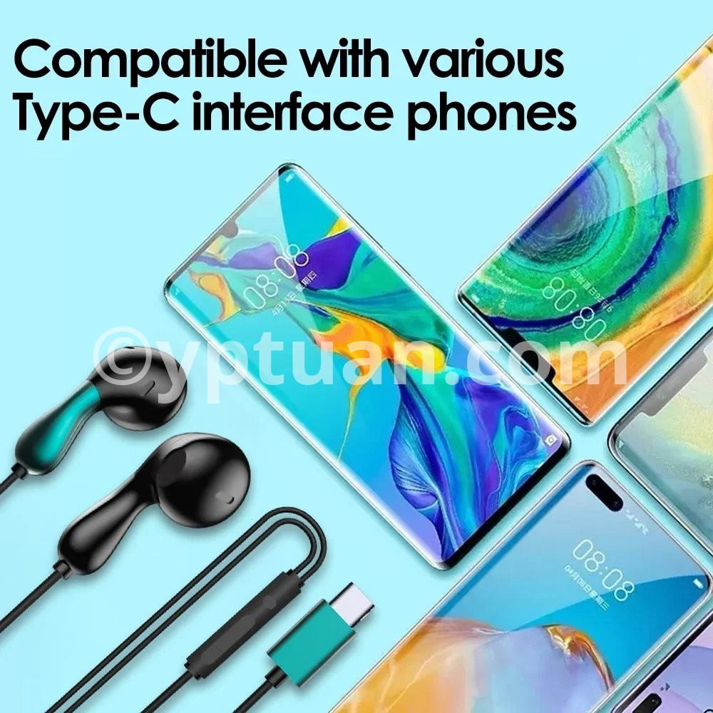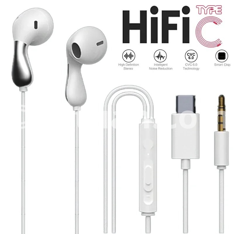 Description Appearance carefully designed, ergonomic design, fit the ear shape, wear more stable, more comfortable, bring you a wonderful sensory experience. High sensitivity, professional moving coil sound unit, restore the real sound quality, create space stereo speakers. Type-c interface plug, compatible with a variety of electronic devices. Specification Category: Wired Headphones Material: ABS+TPE Color: white, black, black and green Size: cord length 1.2m Packing size: 13.5*7.5*0.9cm Speaker diameter: 14.2mm Plug type: Type-c interface Usage Scenario: music, games, calls, etc. Quantity: 1 Package Include:1*Wired Headset