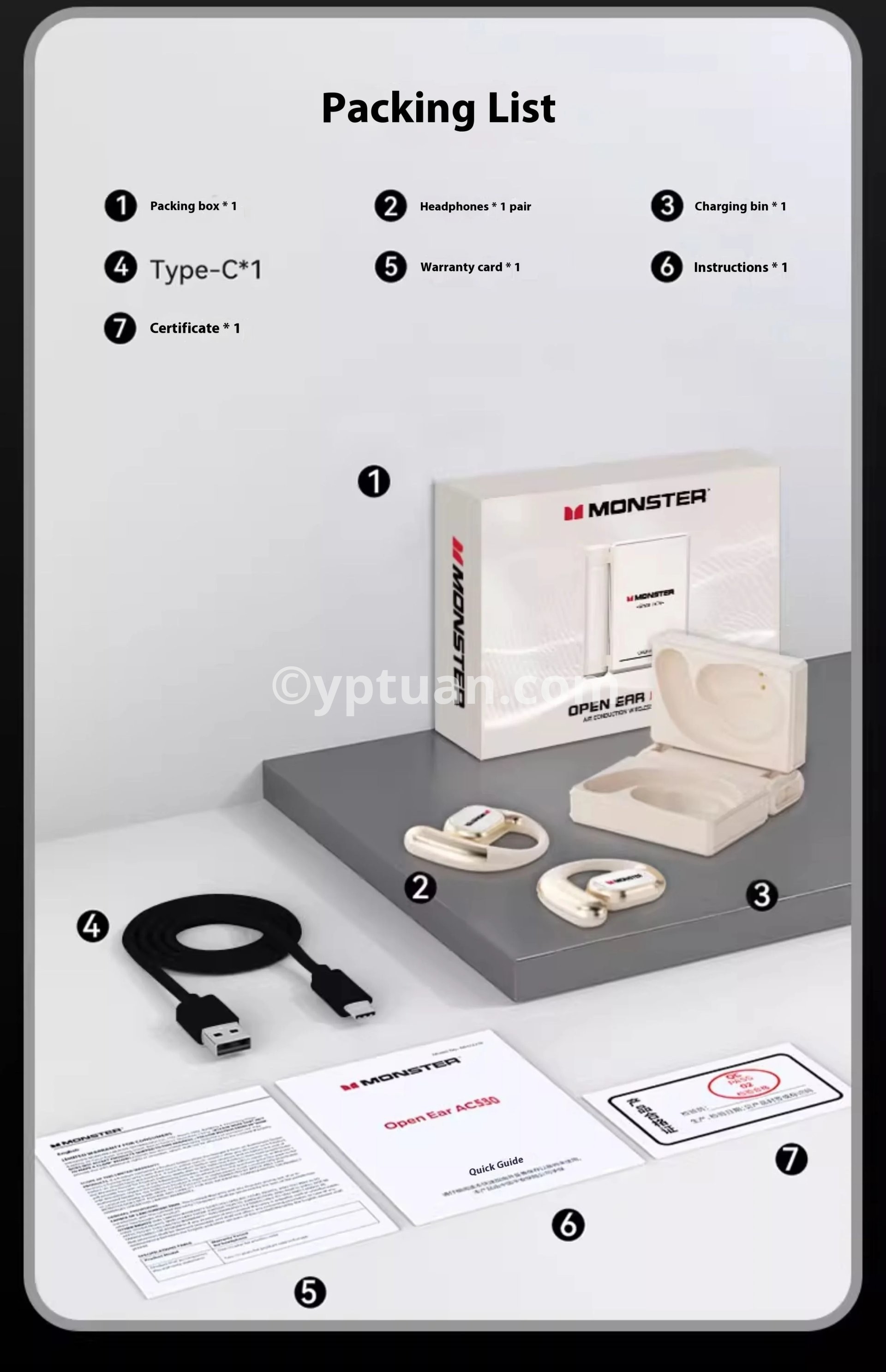 Brand name:Monster Model: AC530 Connection method: Bluetooth 6.0 Color:As shown in the figure Waterproof: YES