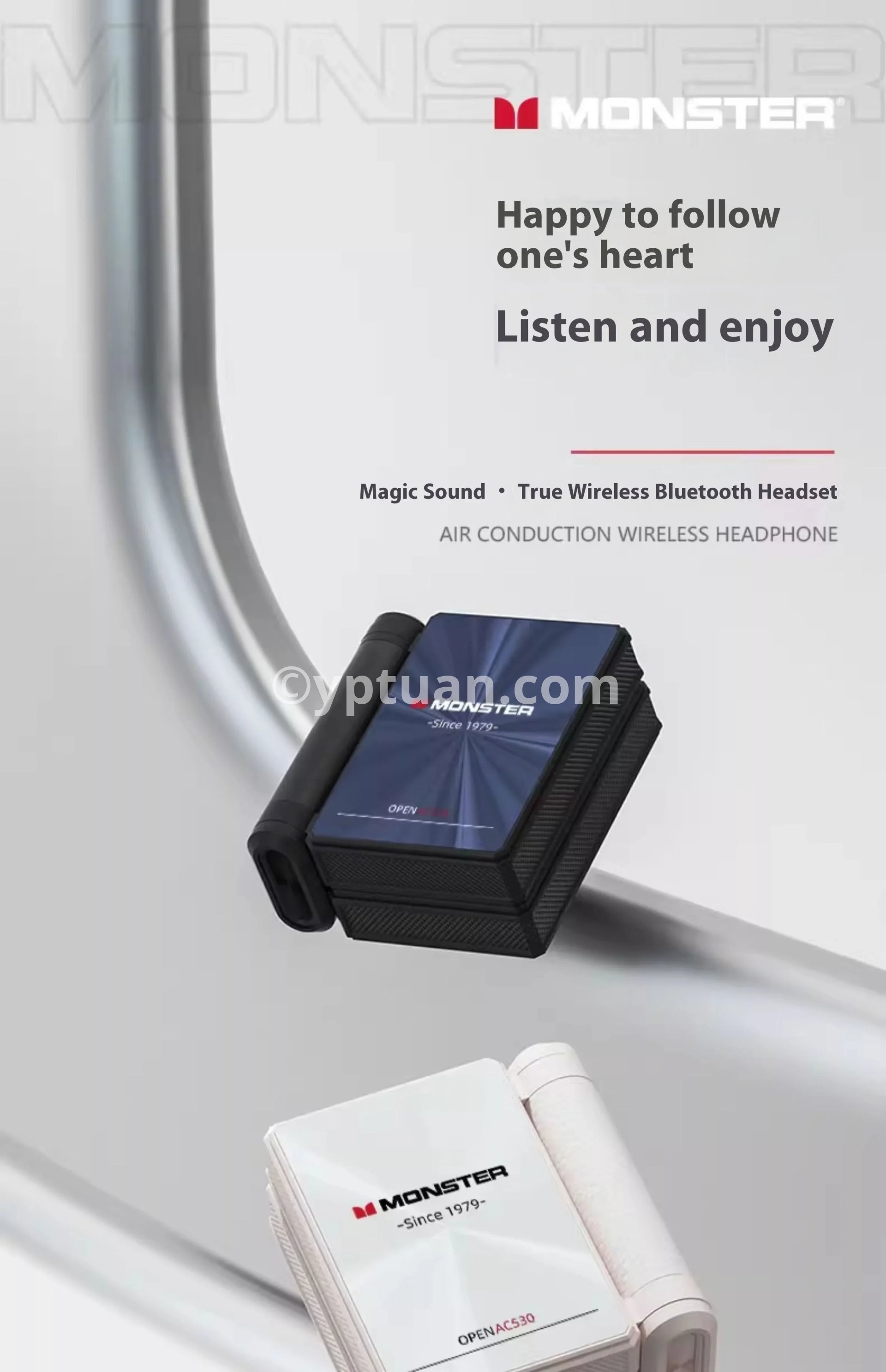 MONSTER AC530 Bluetooth Earphones Non In Ear Bone Conduction Wireless Sports Waterproof Double Folding Earphones Customized