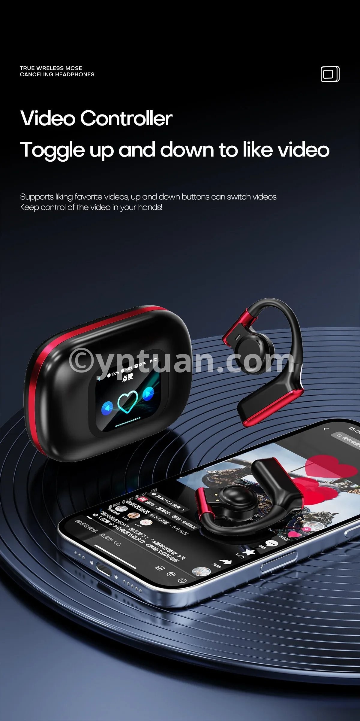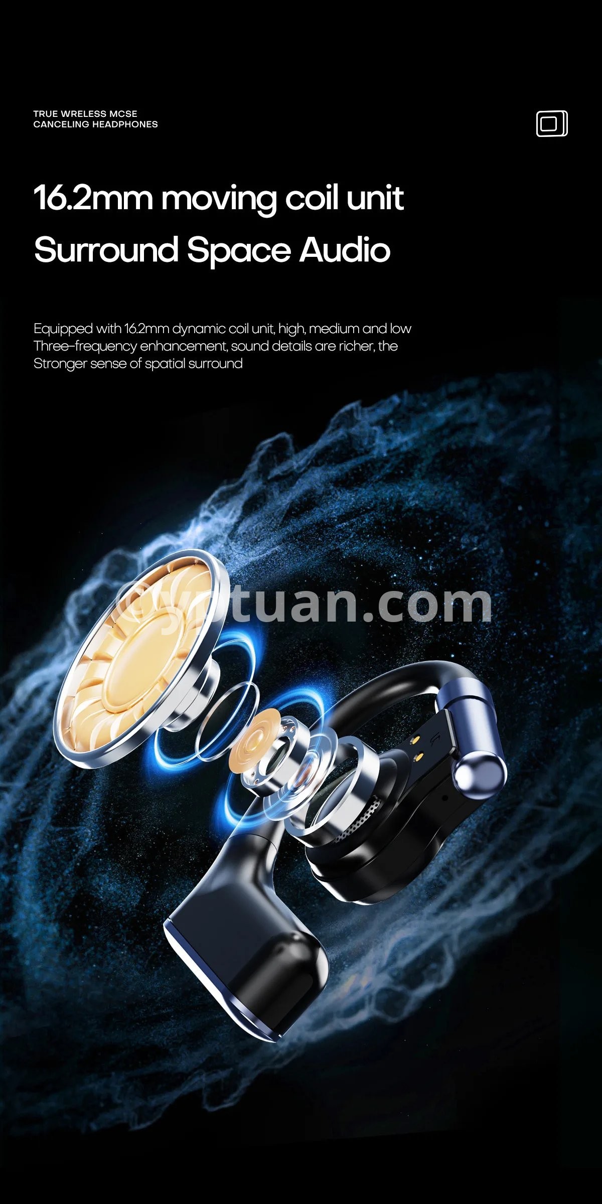 The Bluetooth earphones adopt a hanging ear design, and the composite diaphragm dynamic coil unit makes the sound full and thick, with natural hearing, restoring the authenticity of the audio and the dynamics of the sound. It feels like listening on site, providing you with realistic sound.