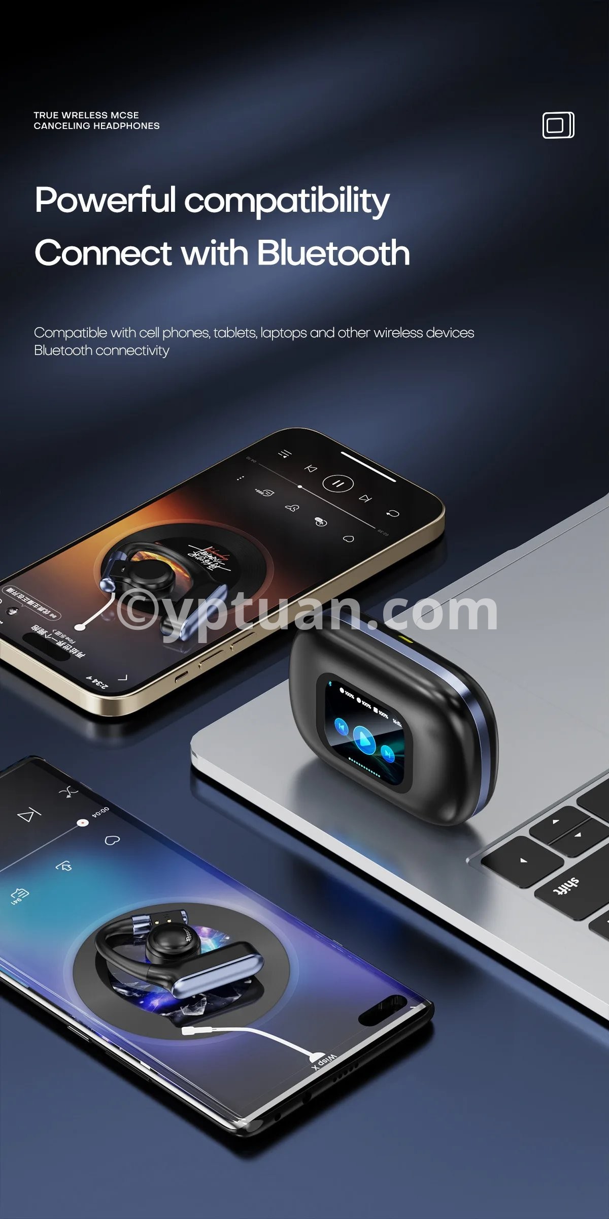 This Bluetooth headset is compatible with smartphones, tablets, and laptops using iOS 9.0/Android 5.0 or higher versions (not compatible with smartwatches). You will enjoy the convenience brought by these sports headphones.