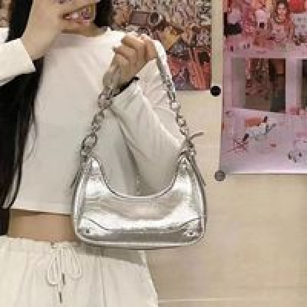 Free Shipping 2025 Niche Silver Baguette Bag, Luxury Women's Chain Underarm Purse, Versatile & Chic Shoulder Crossbody Bag