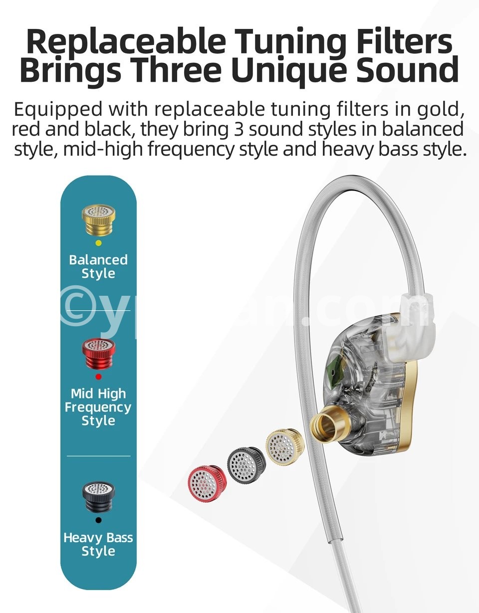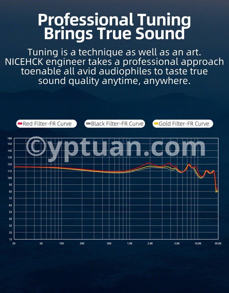 12.Sound Style of Filters:Gold Balanced, Red Mid High Frequency, Black Heavy Bass