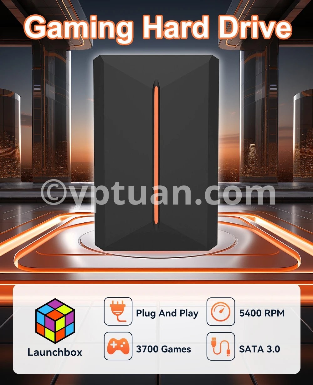 ??Launchbox game front-end, plug and play ??Pre-installed 3700 retro games and PC games ??Compatible with PS4, PS3, PS2, WII, Switch, WIIU, N64 and other console emulators ??Applicable to PCs with Windows 8.1 and above ??Supports archiving and reading, starting from where you left off at any time ??110,000 game download resources are given away ??5400 RPM, 128MB cache, fast reading and writing speed ??SATA 3.0 to USB 3.0, up to 6Gbps/S ??Supports 15 system languages