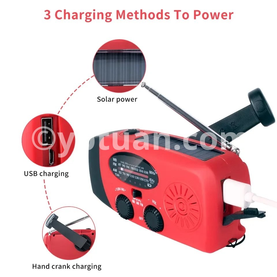 *3 Rechargeable Ways: Micro USB charging, Solar charging, Manual hand crank to wind up the internal battery.