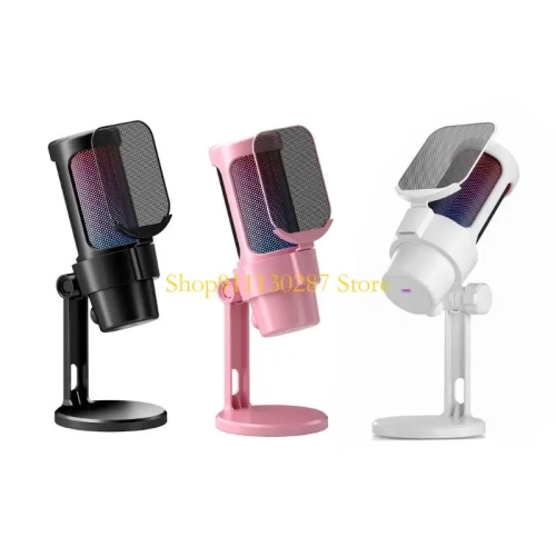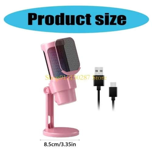 Features: Experience superior sound quality with the USB Microphone, featuring a high sampling rate of 192kHz/24Bit and a heart shaped pickup pattern for clear, auditory This condenser microphone boasts Color breathing LED lights that automatically change color, creating immersive gaming while visually indicating the mic For gamers, streamers, podcasters, and content creators, this microphone is to meet the needs of anyone requiring professional grade auditory performances. Perfect for recording, streaming, podcasting, or live performances, the USB Microphone ensures your voice in various devices. Simply via USB or Type C, and enjoy seamlessly compatibility with most operating systems and devices, making it essential tool for any digital creators. Specifications: Material: tube ABS Function: noise reduces condenser microphone with LED light Type: Condenser Microphone Frequency Response Rate: 30Hz-20KHz Type: Recording live game microphone Operating voltages USB / Type C cable power supply Sensitivity: -40dB±3dB Sampling frequency: 192kHz/24bit Connection: USB/TYPE C Channel Recording: 1 channel Allowable sound pressure level: 110DBA Operating 5V Operating current: 100mA Color:Optional Base diameter:about 5.0cm/1.97in Package Includes: 1Set Microphone Note: There might be a bit color distortions due to different computer resolution There might be size errors due to different computer resolution