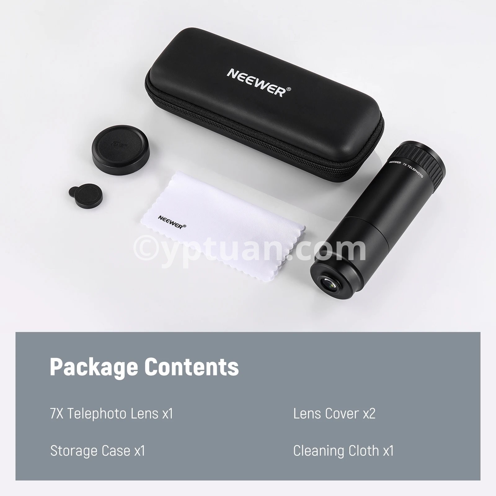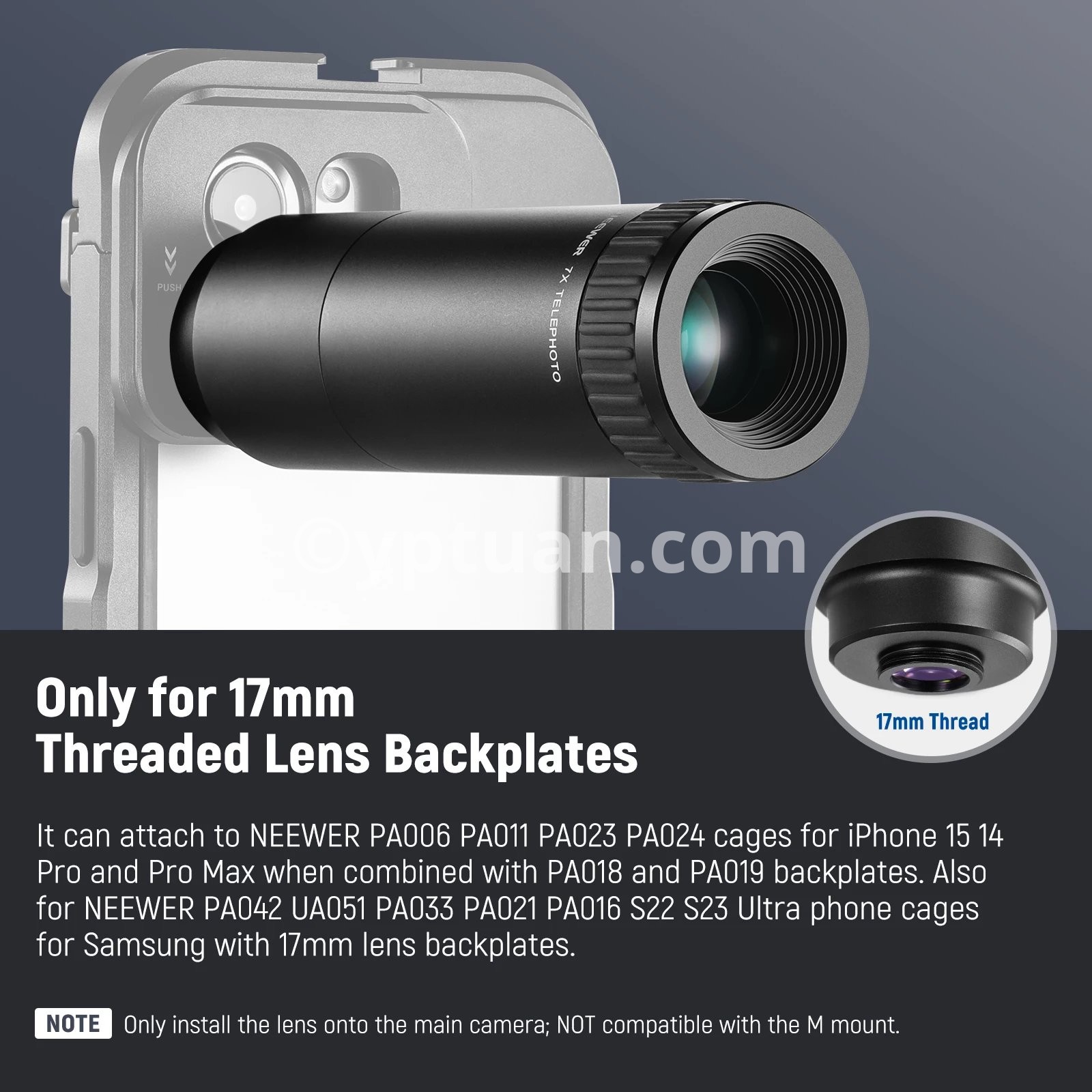 NEEWER HD Telephoto Lens for Phone Camera 7X Magnification Lens Attachment with 17mm Thread, 15 Elements 12 Groups Compatible with SmallRig NEEWER iPhone Samsung Cage with 17mm Lens Adapter, LS-36