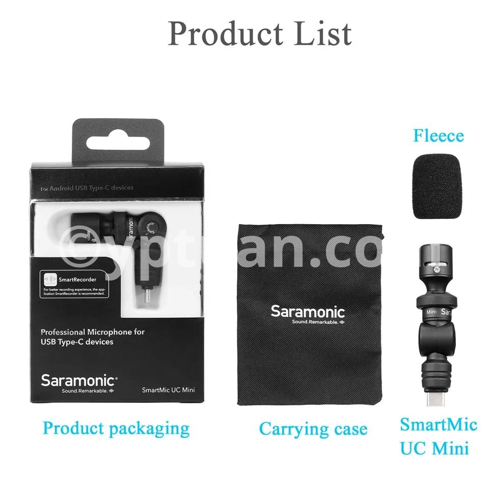 Professional Microphone for USB Type-C device Saramonic SmartMic UC Mini professional microphone for USB Type-C devices. Tip: For better recording experience, the application SametRecorder is recommend.