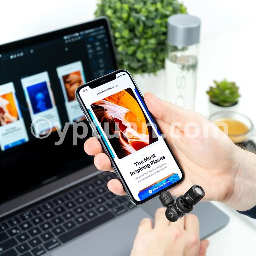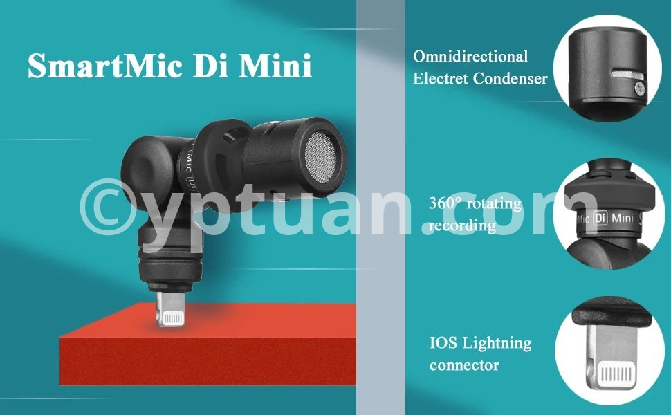 Compatibles with iPhone, iPad, and iPod Touch Plug-and-play operation Improved sensitivity and signal-to-noise Reduces ambient noise during recording Flexible angle-free design Foam windscreen included