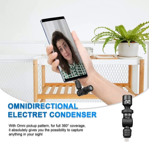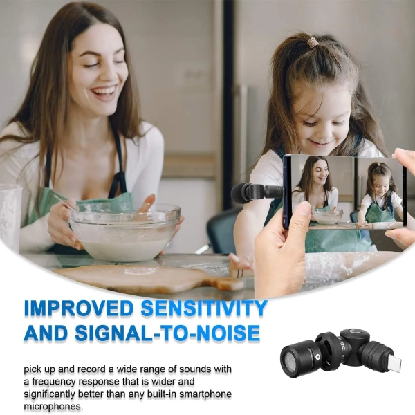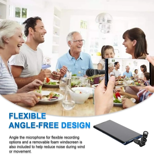 Compatible with most USB Type-C devices (smartphones, tablets, and laptops) Plug-and-play operation Improved sensitivity and signal-to-noise Reduces ambient noise during recording Flexible angle-free design Foam windscreen included