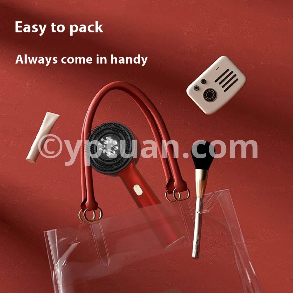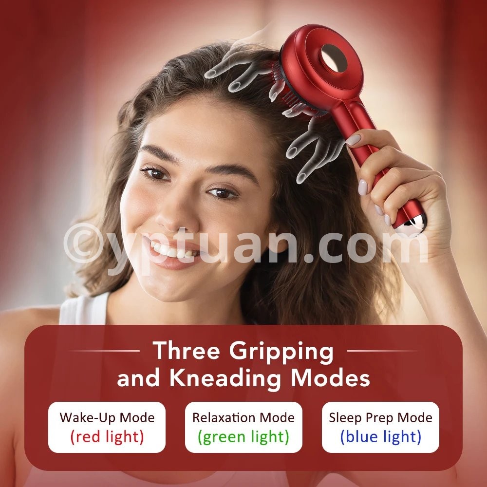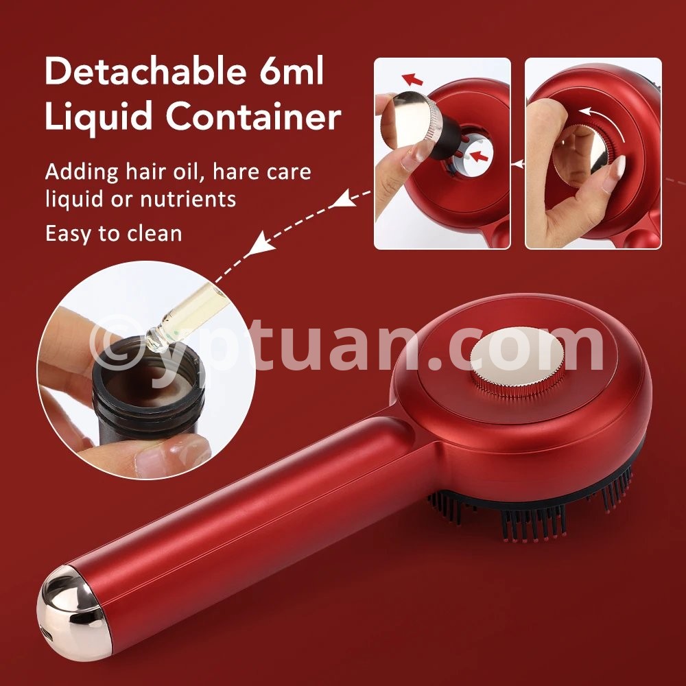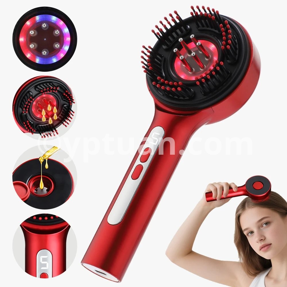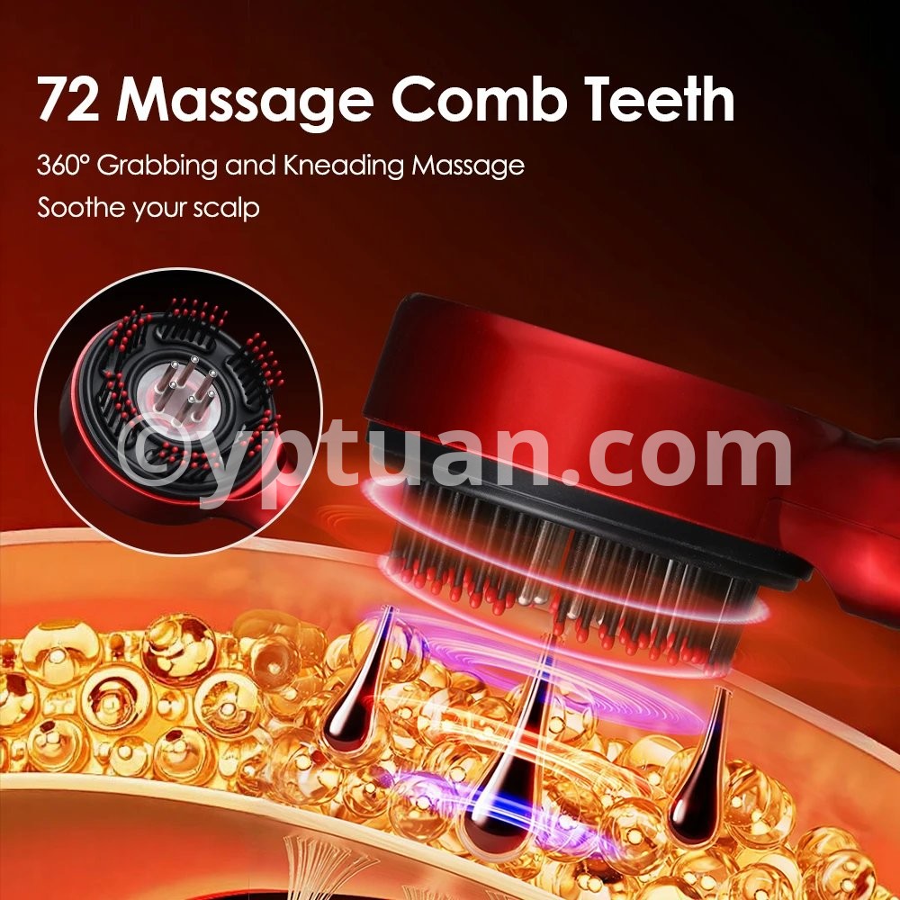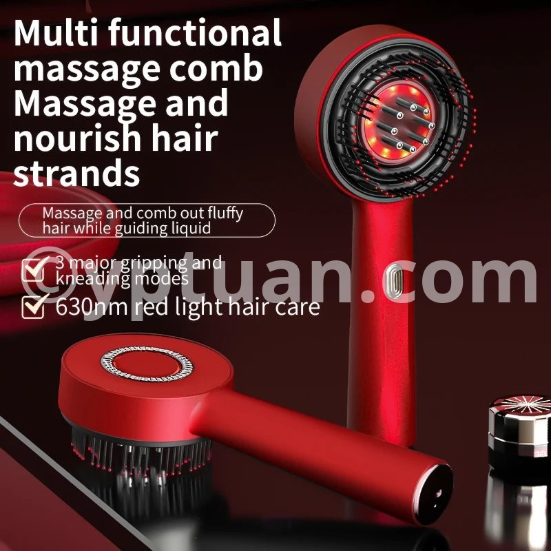 Note: 1.Just New Type Massage Comb Have Micro-current Function! 2.New Type Massage Comb Have No Storage Bag! Features: 1.This electric head massager features three unique grab-and-knead modes: Wake-Up Mode (red light) — quick combing with acupoint stimulation; Relaxation Mode (green light) — gentle kneading to enhance scalp micro-circulation; and Sleep Prep Mode (blue light) — alternating fast and slow speeds to ease tension and promote deeper sleep. 2.Equipped with 8 micro-current teeth and three adjustable intensity levels — Level 1 (red), Level 2 (blue), and Level 3 (green) — this hair growth comb stimulates the scalp through kneading motions. The scalp relax massager glides along meridians, opens pressure points, and decompresses the head, strengthening hair roots to stabilize hair density. 3.The scalp relax massager boasts 72 rounded comb teeth that deeply knead the scalp for thicker, fuller hair. Combined with 660nm red LED therapy, it activates follicles, boosts absorption of hair serums, and balances scalp oil production — effectively combating hair loss. 4.This hair care hairbrush includes a detachable liquid reservoir and 6 elastic roller beads that evenly dispense nourishing oils without leaks. No more messy hands — it massages while infusing serums, replacing traditional manual application. 5.The electric kneading massage comb boosts blood circulation, tightens the scalp, and targets multiple concerns.