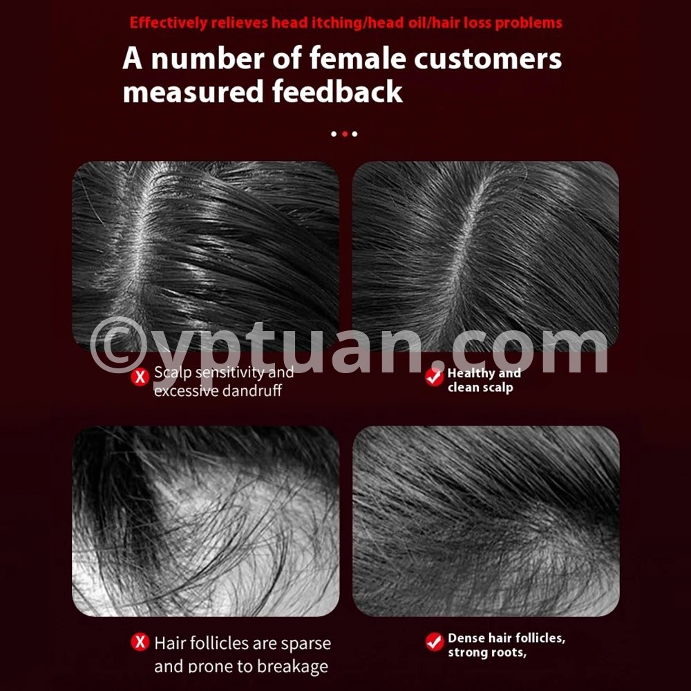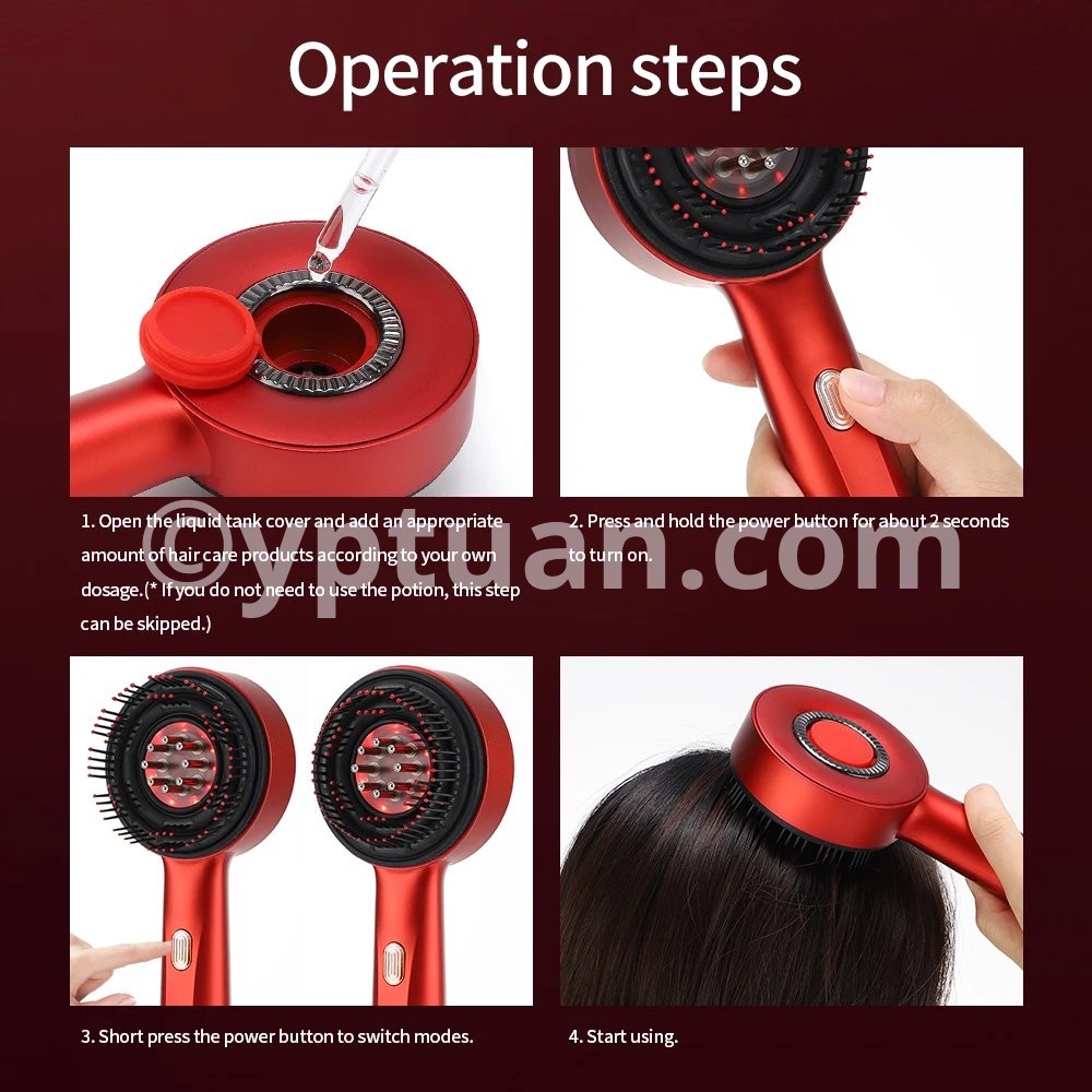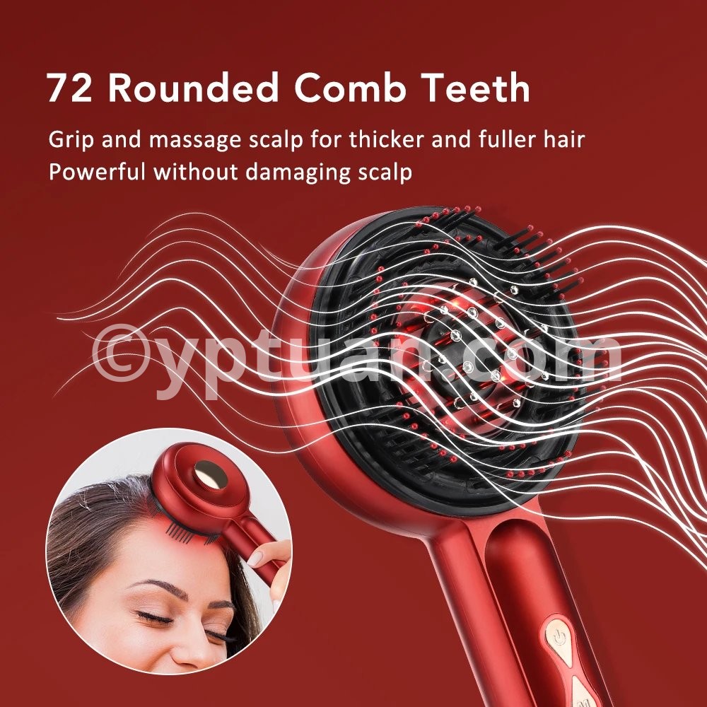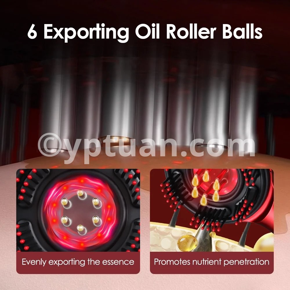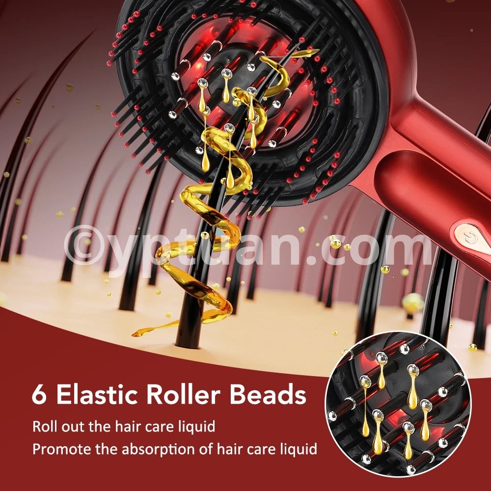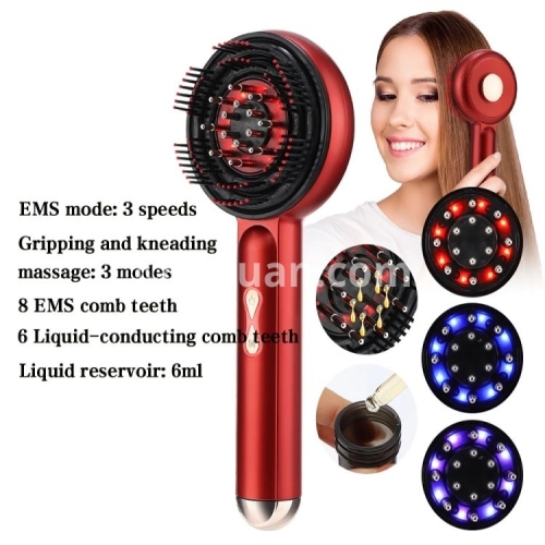 Note: Have NO Micro-current Function! Features: 1.This hair massage comb effectively tightens the scalp, provides deep care for a variety of scalp problems, and promotes scalp health. 2.Equipped with 72 round teeth and 630nm wavelength red light, our massage comb can effectively knead and massage the scalp, deeply nourish the hair roots, and help you create lush and luxuriant hair. 3.Three scalp massage modes are available, which can help promote scalp micro-circulation, soothe nerves, help sleep, and bring a more comfortable rest experience. 4.The 6ML large-capacity liquid guide tank and 8 roller balls design help to evenly squeeze out the hair care liquid, so that the hair growth care liquid can be introduced while massaging the scalp, nourishing the scalp and hair in all directions.