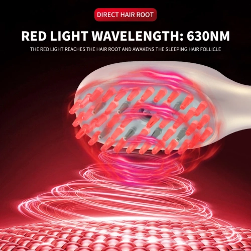 Red light can improve scalp microcirculation, reach deep into thehair follicles, promote blood circulation in the hair follicles, andprovide nutrition for the hair follicles. The deep part of the hair follicles is rich in melanin, which just absorbs the special wavelength of 650nm and reaches the hair follicles directly,awakening the dormant hair follicles to enter the growth state.