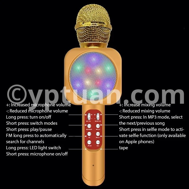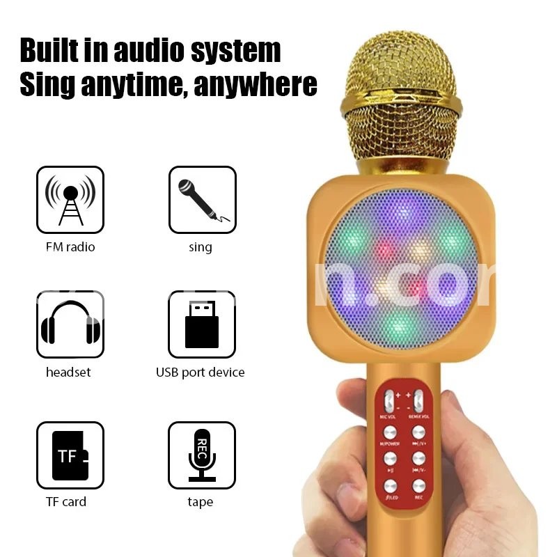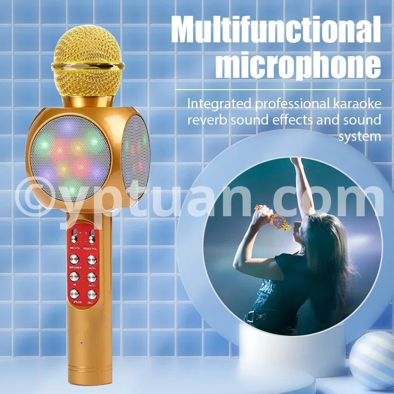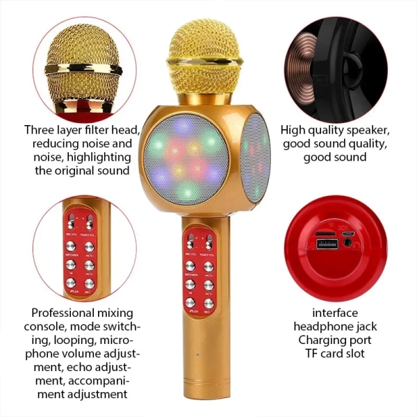 WS1816 Multifunctional Kids Microphone 5 in 1 Wireless Bluetooth Microphone with LED Lights Portable Mic Speaker