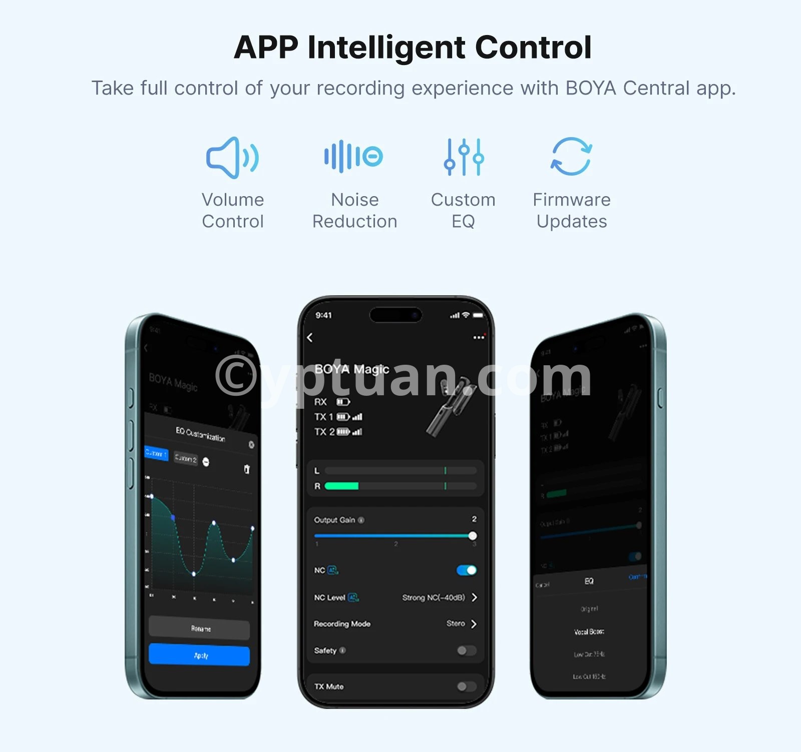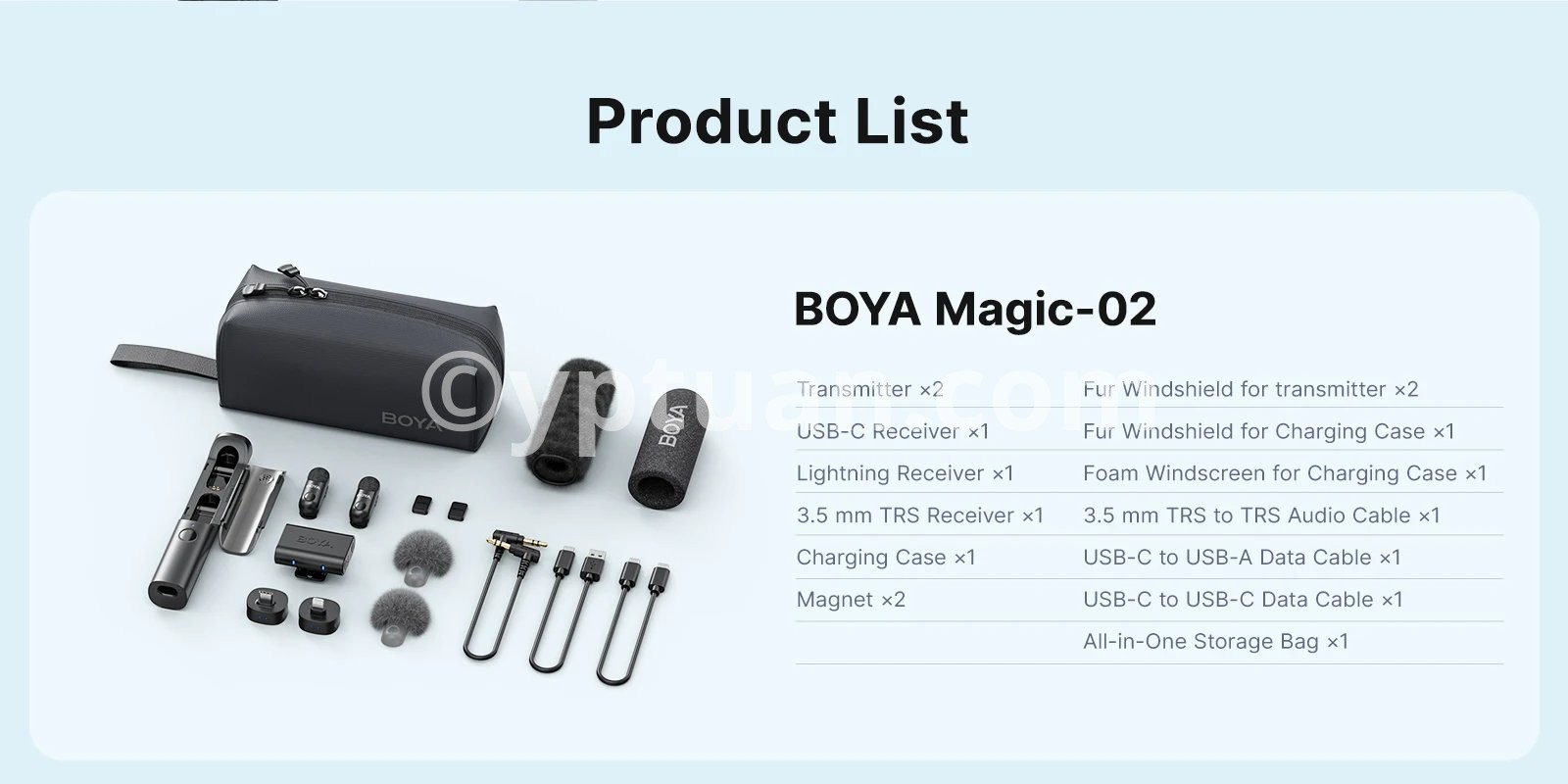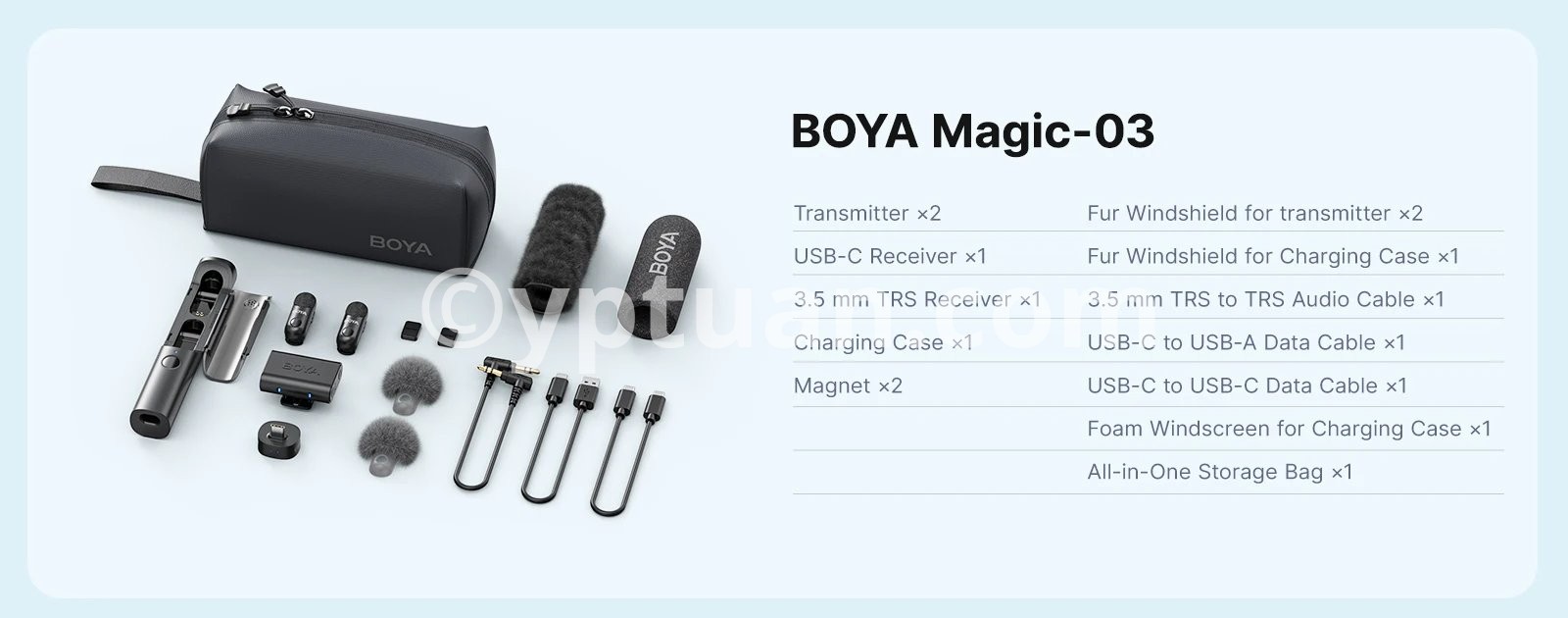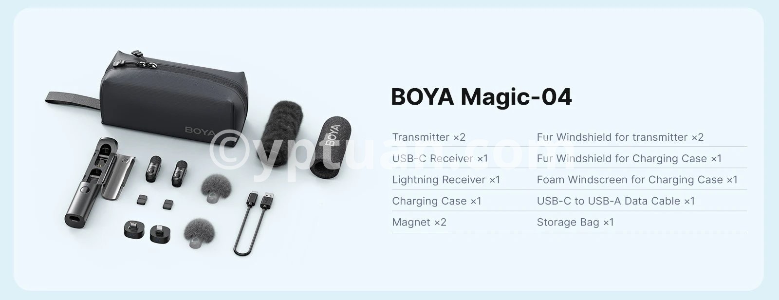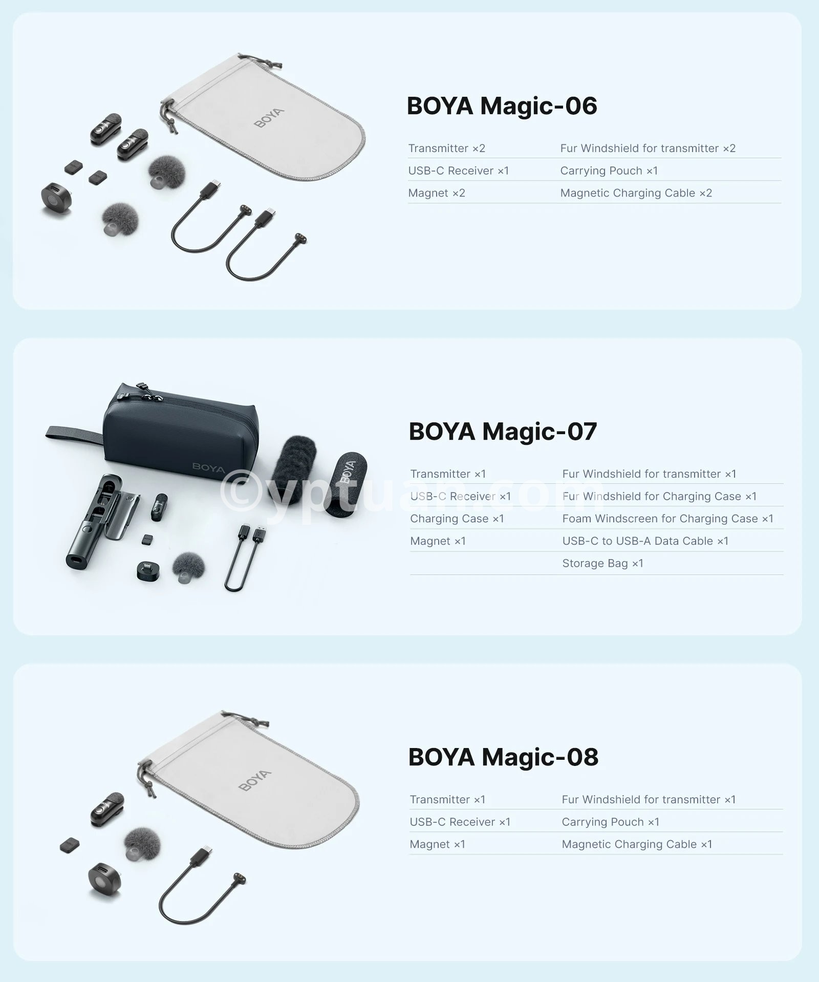 Kind tips: BOYA Magic 02/03/04/05/07 With Charging Case BOYA Magic 06/08 Without Charging Case