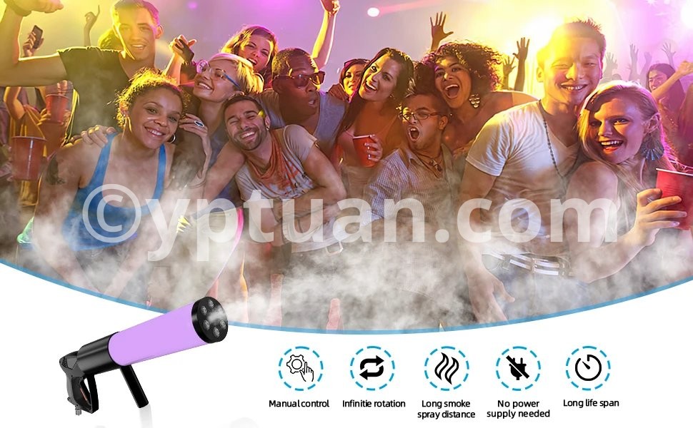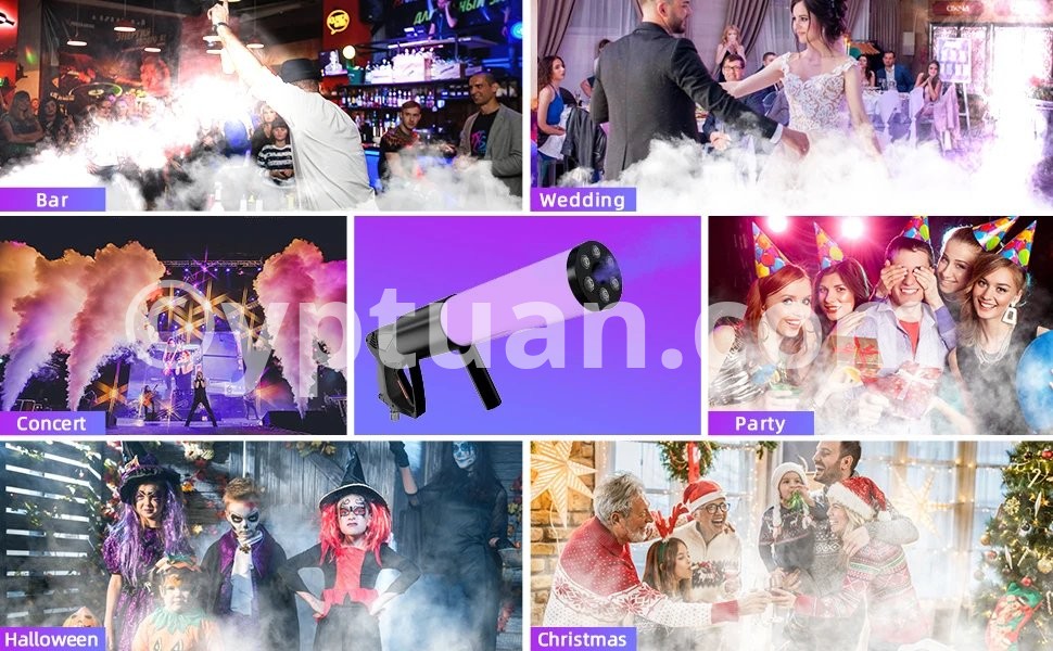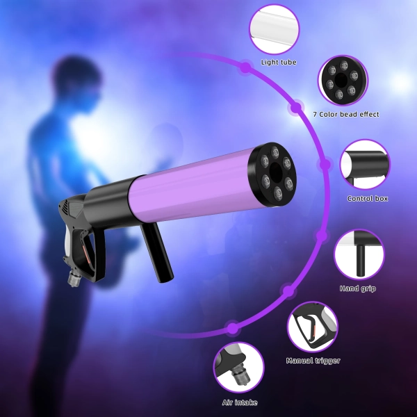U'King LED Six Lights Carbon Dioxide Column Gun RGB Atmosphere Props Smoke Gun Dry Ice Gun For Bar Wedding Business Show Party