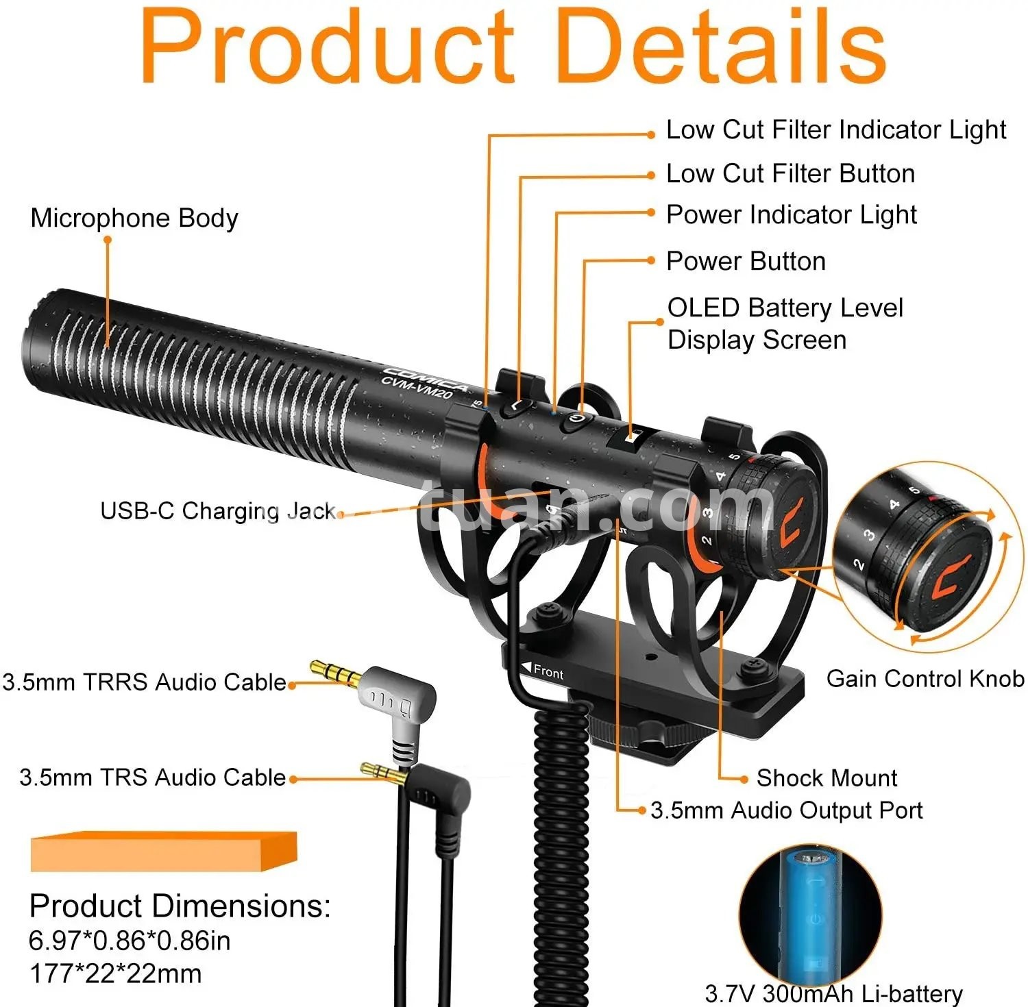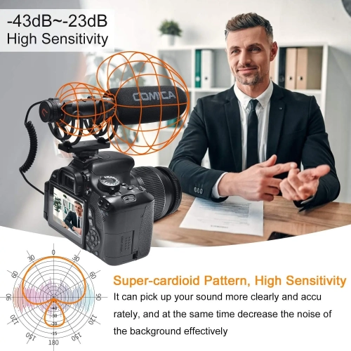 COMICA VM20 Shotgun Microphone, Professional Super Cardioid Microphone with Shock Mount, Camera Microphone For Video Record