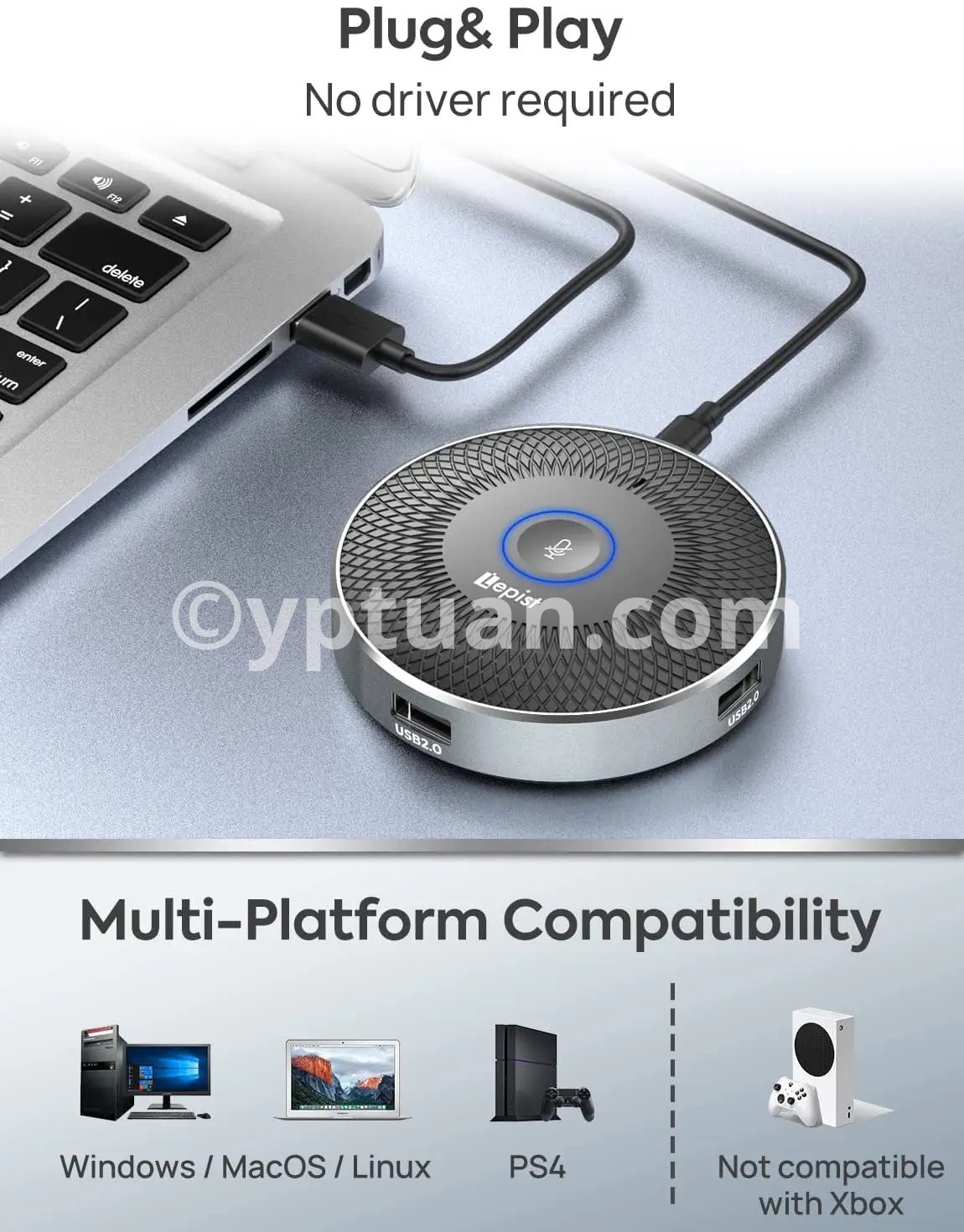 ♫360° Omnidirectional & High Sensitivity: Thanks to the high-grade material and premium workmanship, our mic can catch every word from every one omnidirectional pick-up pattern, capture sounds equally from all direction.