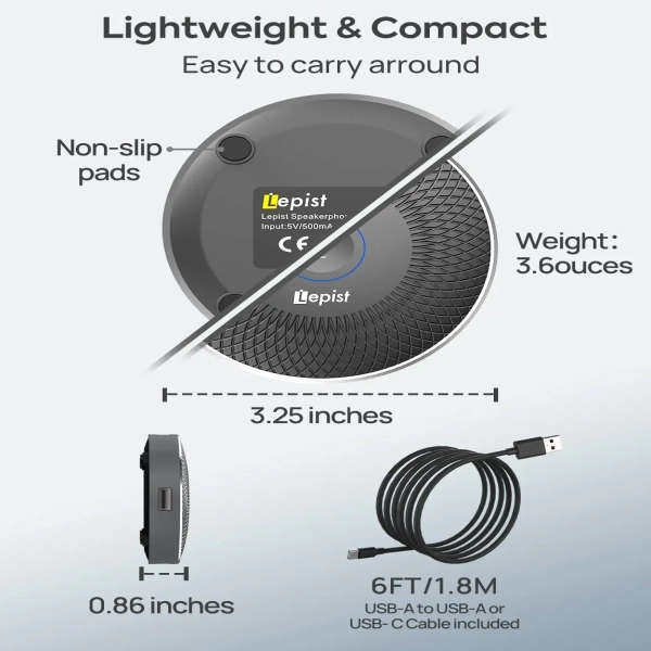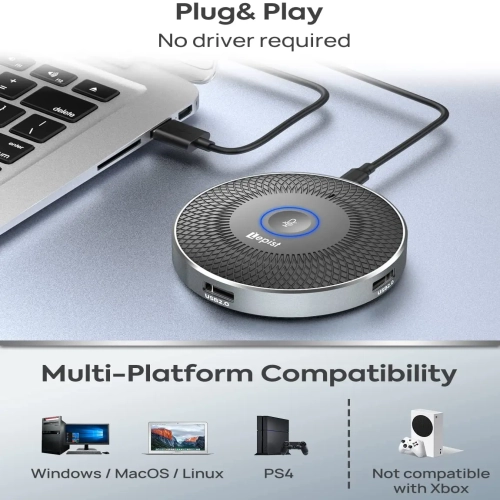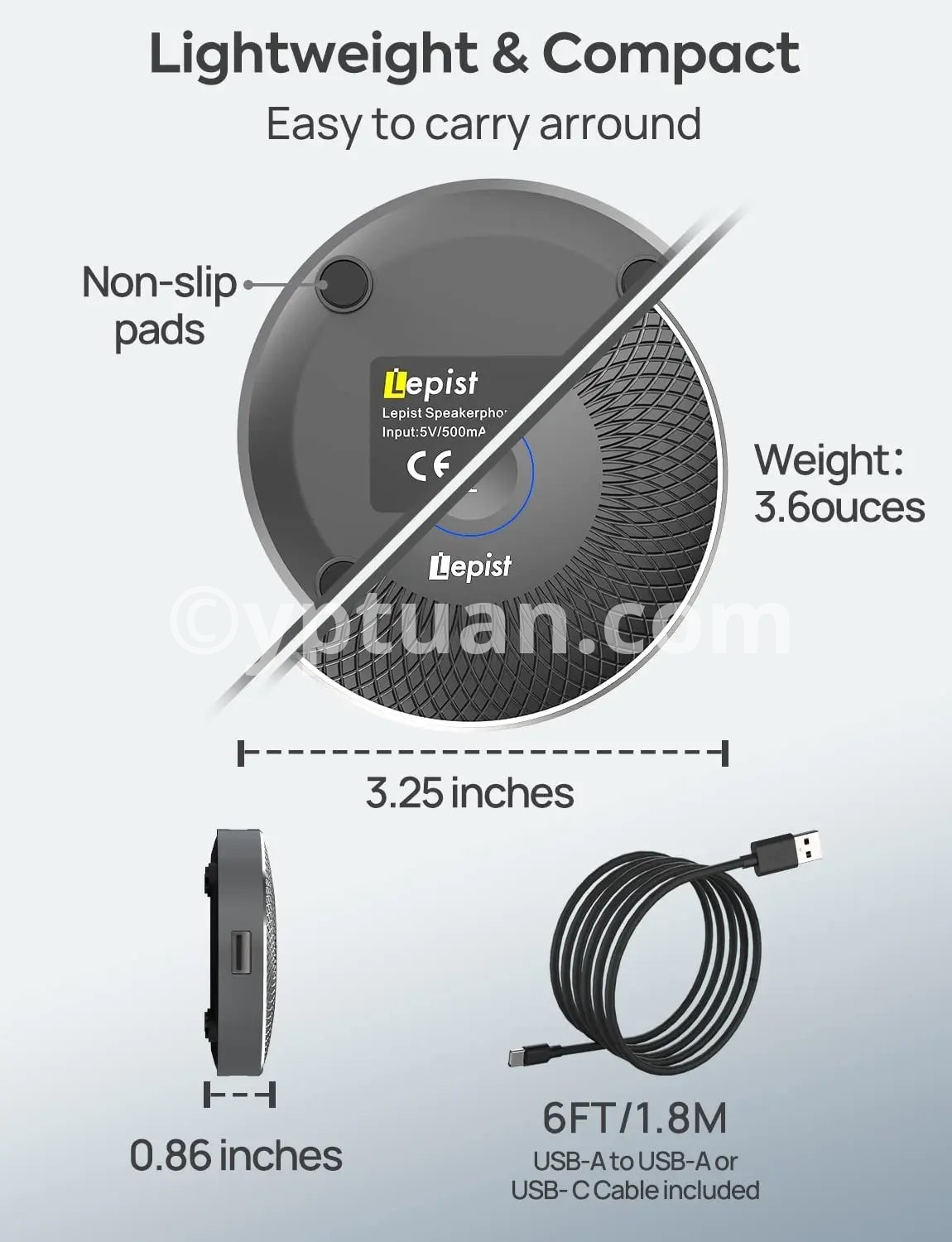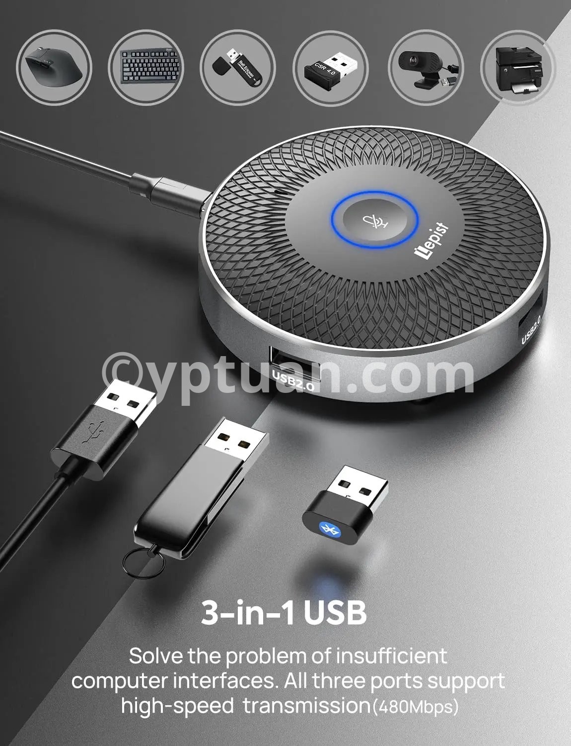 Conference Microphone, Portable 3-in-1 USB Computer Mic, 360° Omnidirectional Pickup for Desktop/Laptop/Tablet,Meeting,Skype Mic