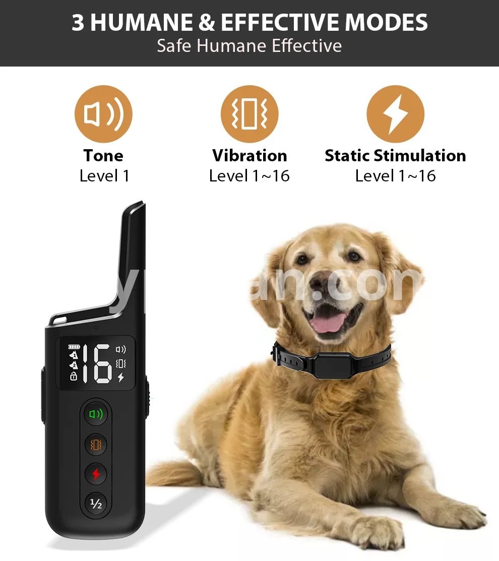3 Control Channels & 3 Safe Training Modes: The dog training collar provides 3 variable training modes of tone function(1-3levels), vibration(0-8levels), shock(adjustable 0-16 levels);bark collar designed for pet owners, dog walkers, and professional trainers,dog shock collar with remote can correct the bad habits like chewing, barking,biting,and digging