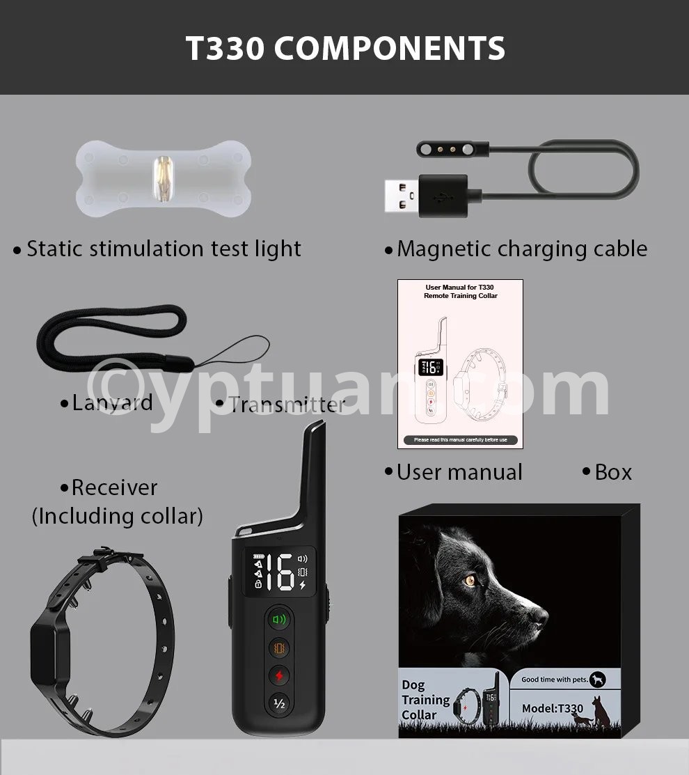 100% Waterproof and 1000 ft Range: electric collar for dogs is IPX7 100% Waterproof Receiver. Please feel free to let your dog play in sea/pool/bath/rain. The range of dog trainer collars is 1000ft. Stronger and steadier signal gives you complete freedom to train your dog in huge space(backyard/park/beach) without losing control.(The remote is not waterproof, please keep it away from water)