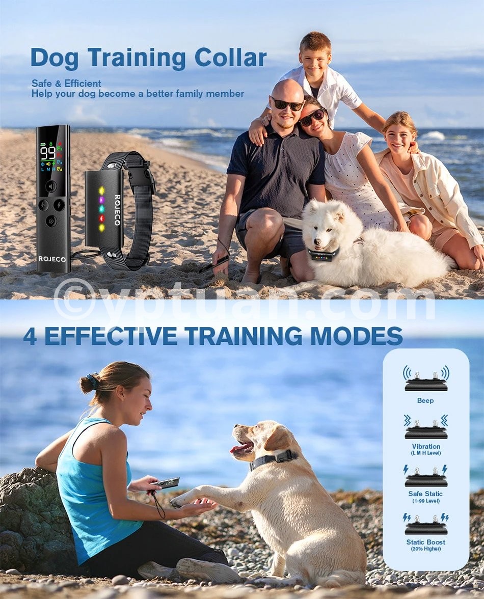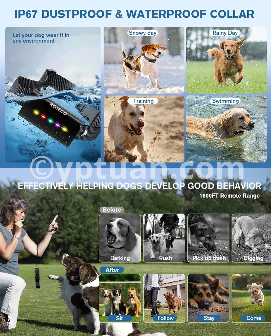 ROJECO Dog Training Collar 1600FT Electric Collars for Dogs Pet IP67 Waterproof Beep Vibration Dog Collar with Remote Control