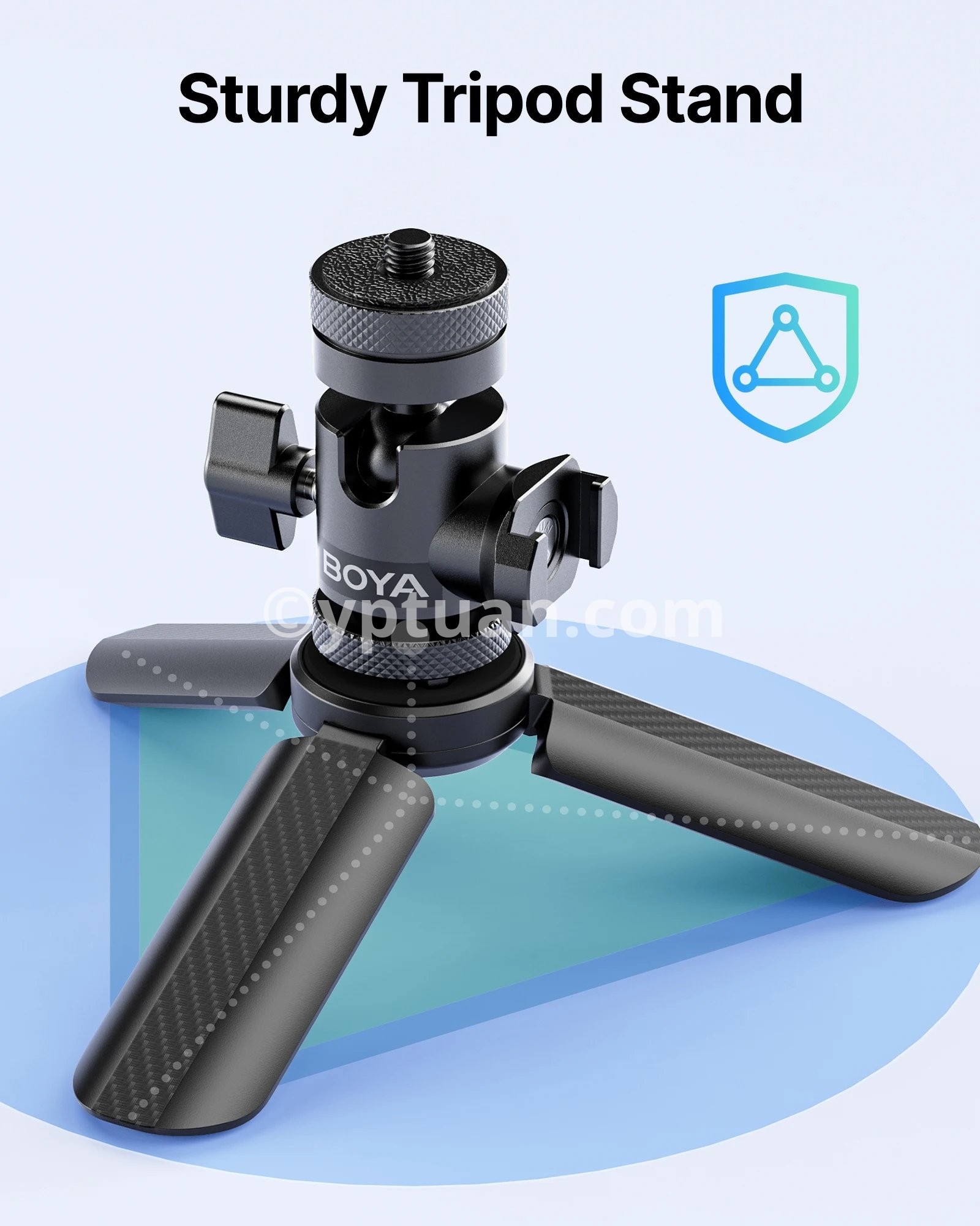 BOYA Magic Compact Tripod Microphone Stand for Desk – Stable & Foldable for Streaming, Podcasting & Gaming Meetings