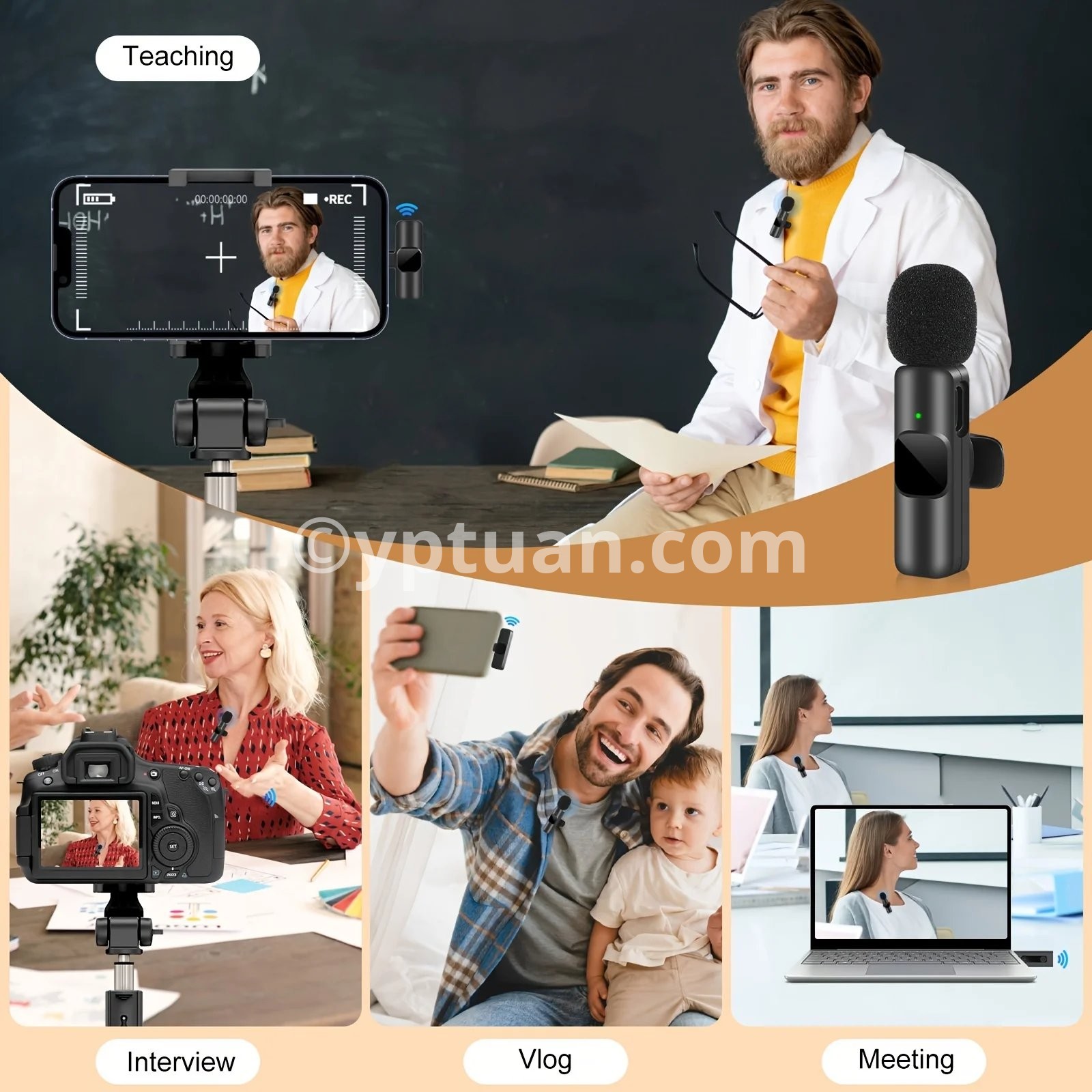 1. With an ultra-low latency of 9ms and a 20m range without obstacles, it's perfect for outdoor live streaming and capturing short videos. 2. Simple to use with a plug-and-play feature and one-button connection. 3. Features intelligent noise reduction to handle various noisy settings, ensuring worry-free shooting. 4. Offers 360-degree omnidirectional sound capture to record every sound detail. 5. Compact and user-friendly, it works with a variety of devices.